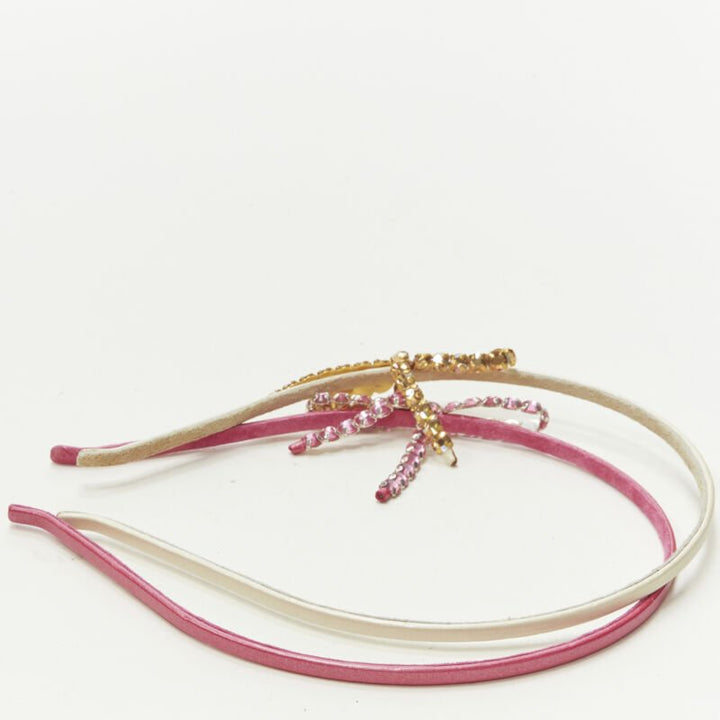 ALEXANDER ZOUARI LOT OF 2 white pink leather crystal ribbon bow headband