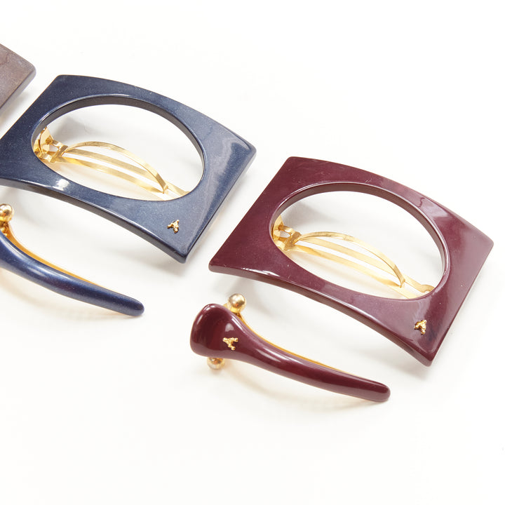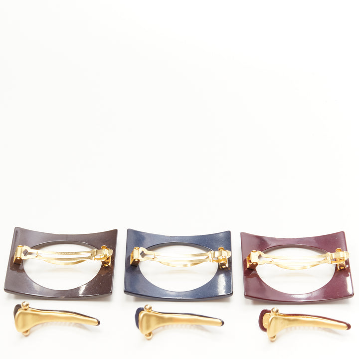 ALEXANDRE DE PARIS Zouari brown blue red square cut out acrylic hair clip X6