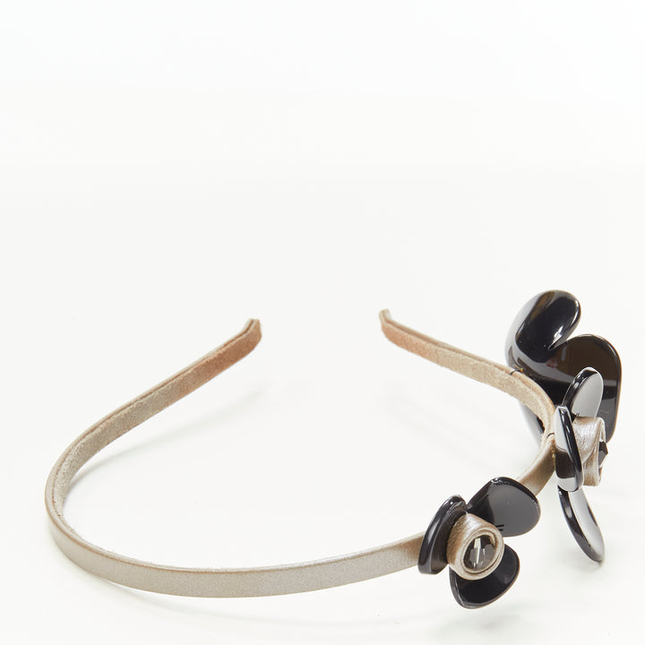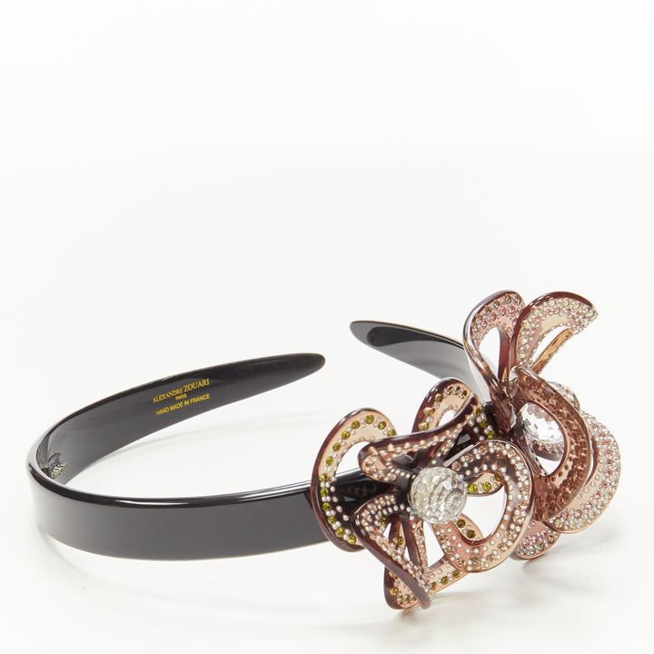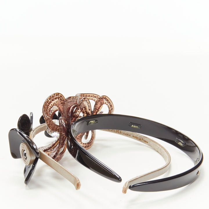 ALEXANDRE ZOUARI black grey crystal 3D layered flower acrylic headband X2