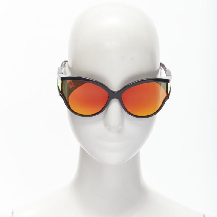 BALENCIAGA DEMNA BB0038S black mirrored orange wrap shield sunglasses