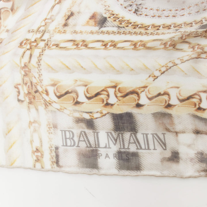 BALMAIN cream modal cashmere chain check tromp loeil print scarf