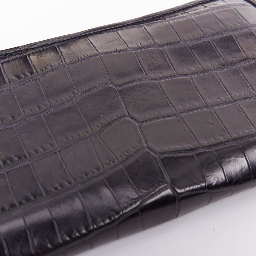 Extra Details: Crocodile leather that this wallet is crafted from, Bottega Veneta proves its dedication to luxurious craftsmanship. Opening to a zipped coin compartment and myriad card slot,