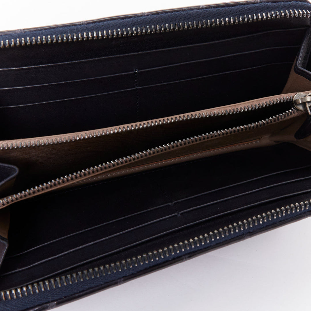 BOTTEGA VENETA midnight blue scaled leather zip around long wallet