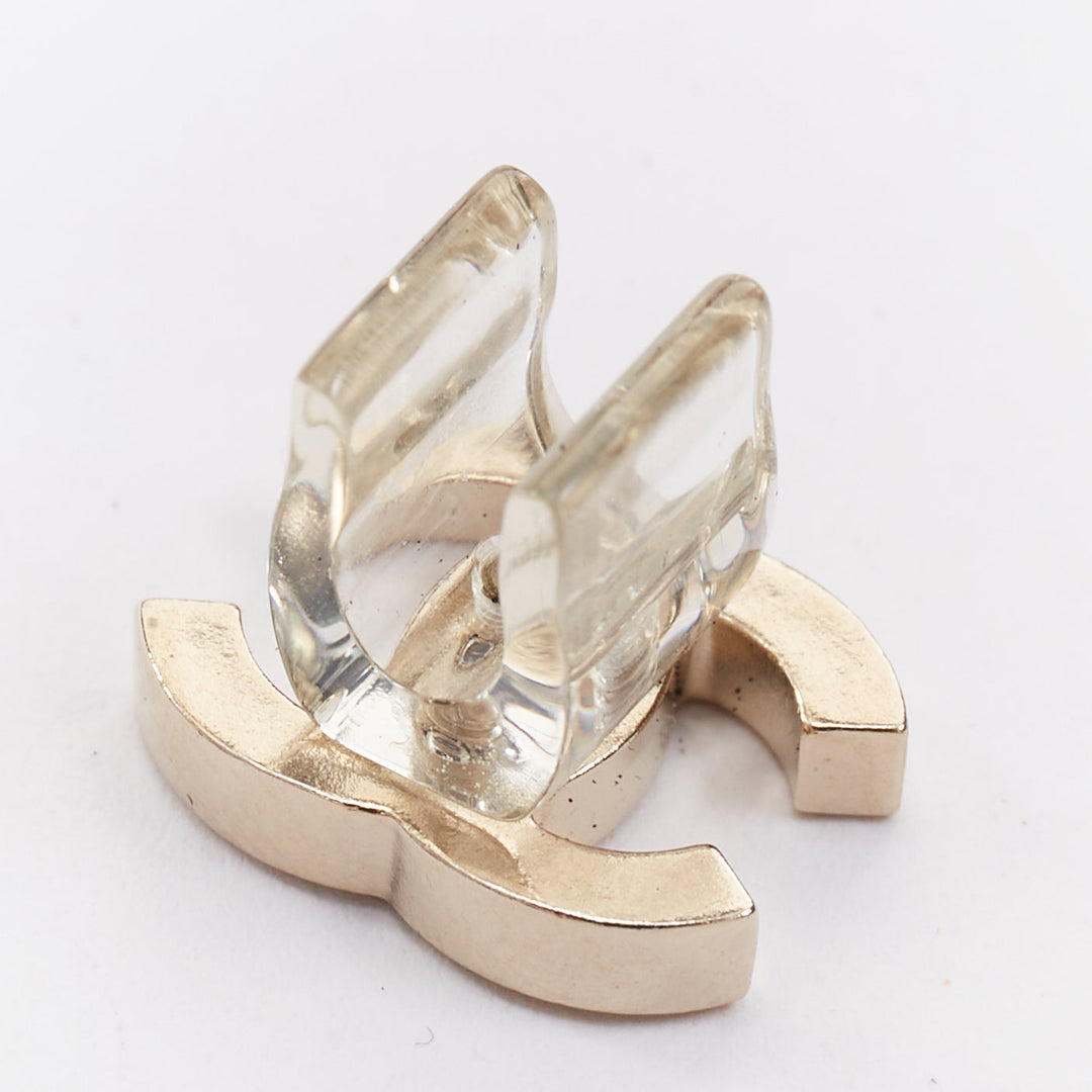 CHANEL silver tone crystal pave CC logo cable clips phone charm Set of Two