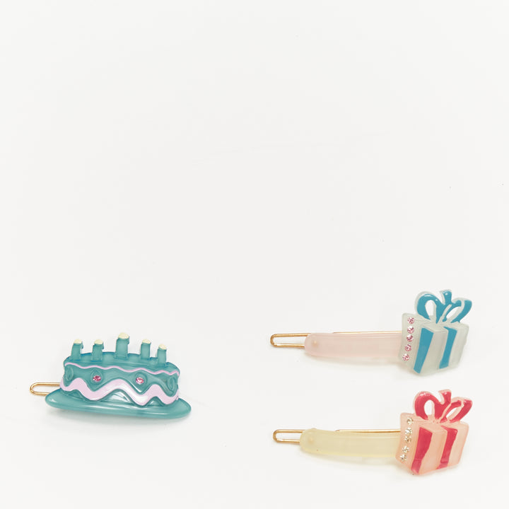 CHIC & MODE Alexandre Zouari colourful crystal birthday cake gifts hair clips X3