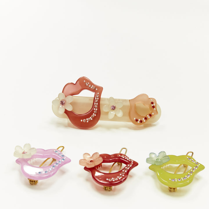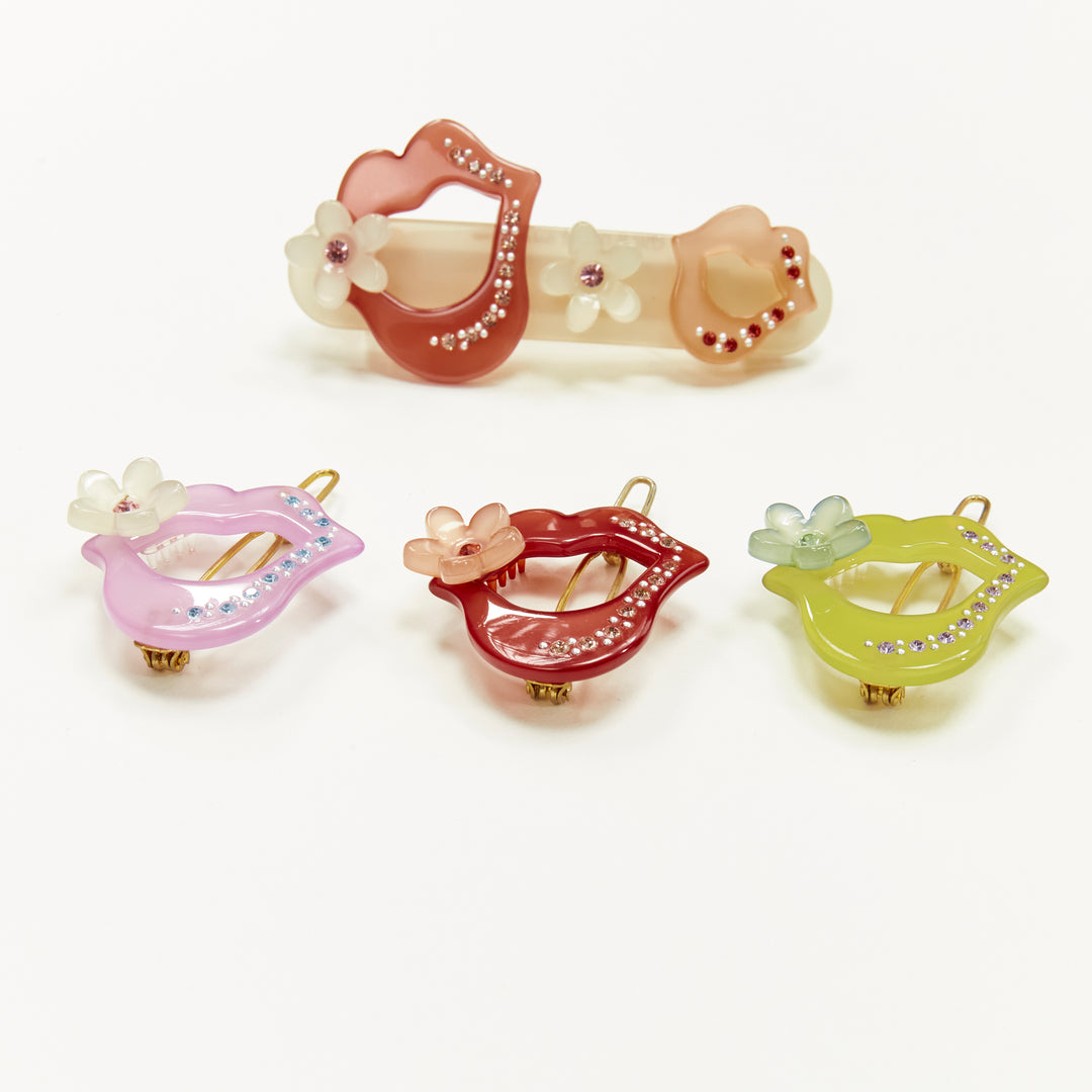 CHIC & MODE Alexandre Zouari colourful crystal singing lips flowers clips X4