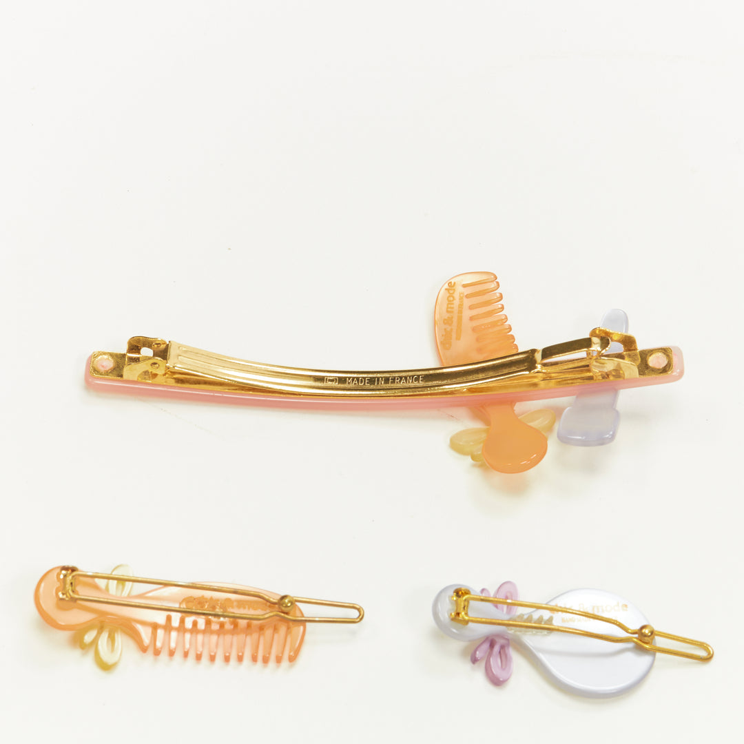 CHIC & MODE Alexandre Zouari orange grey combs lipstick acrylic clips X3