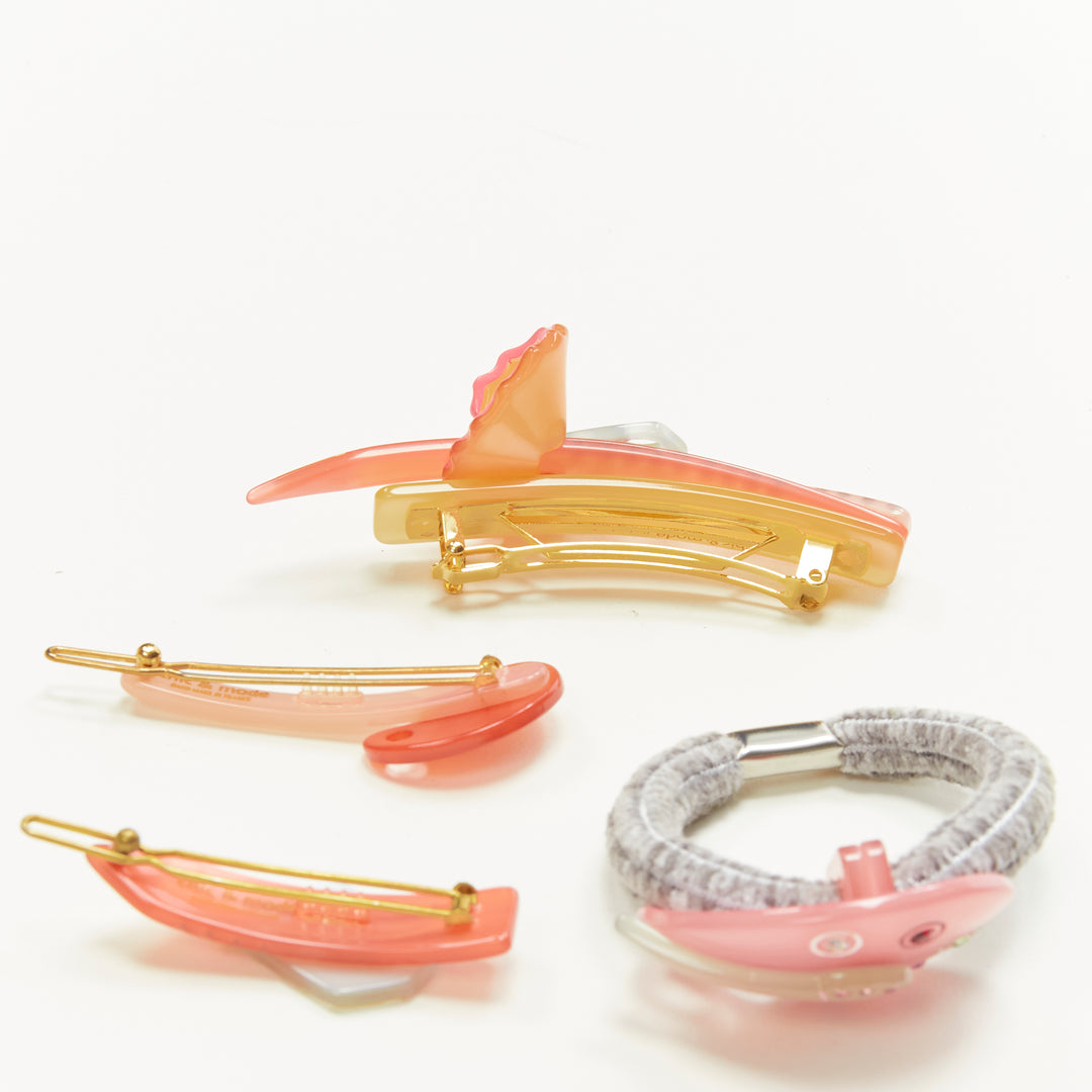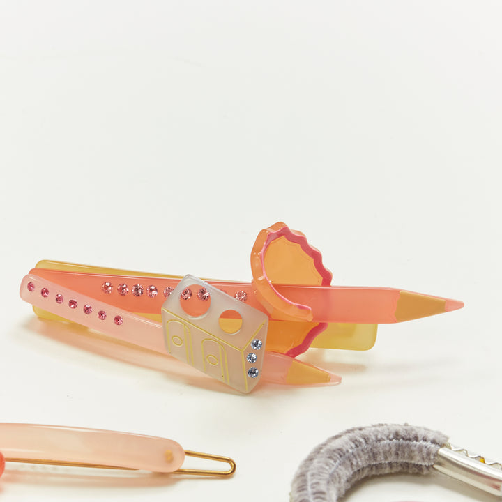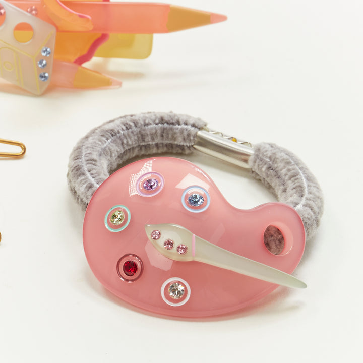 CHIC & MODE Alexandre Zouari pink brush stationary acrylic crystal clip tie X4