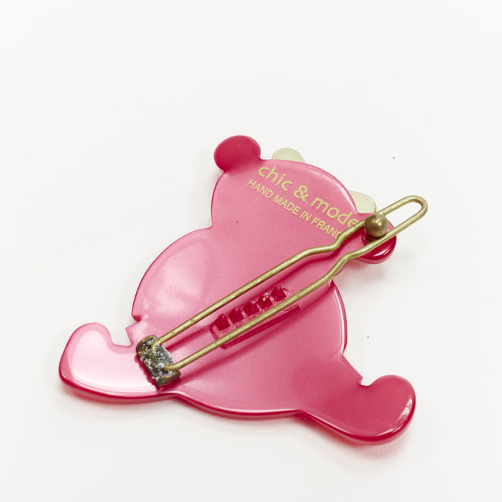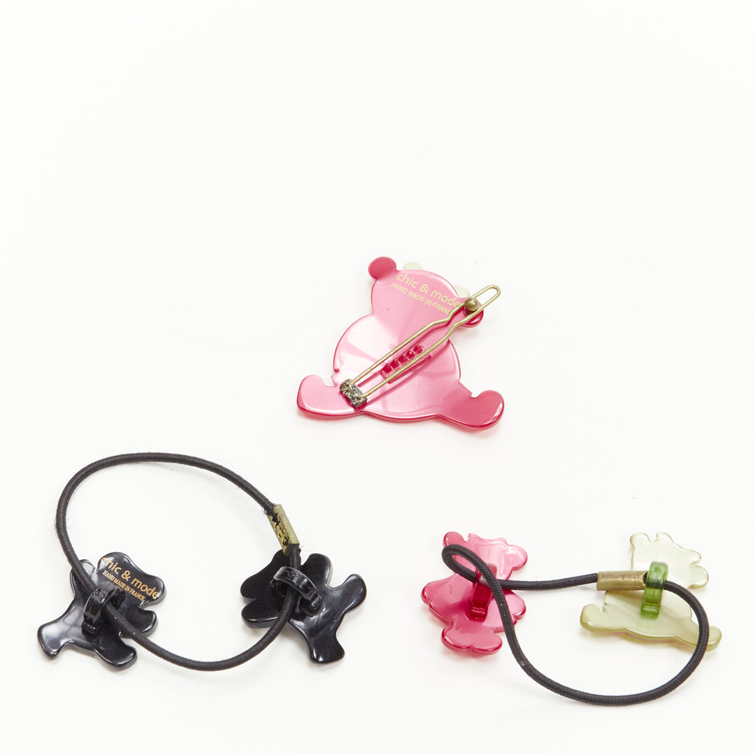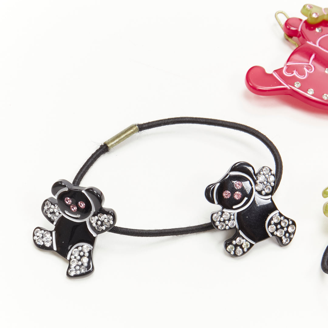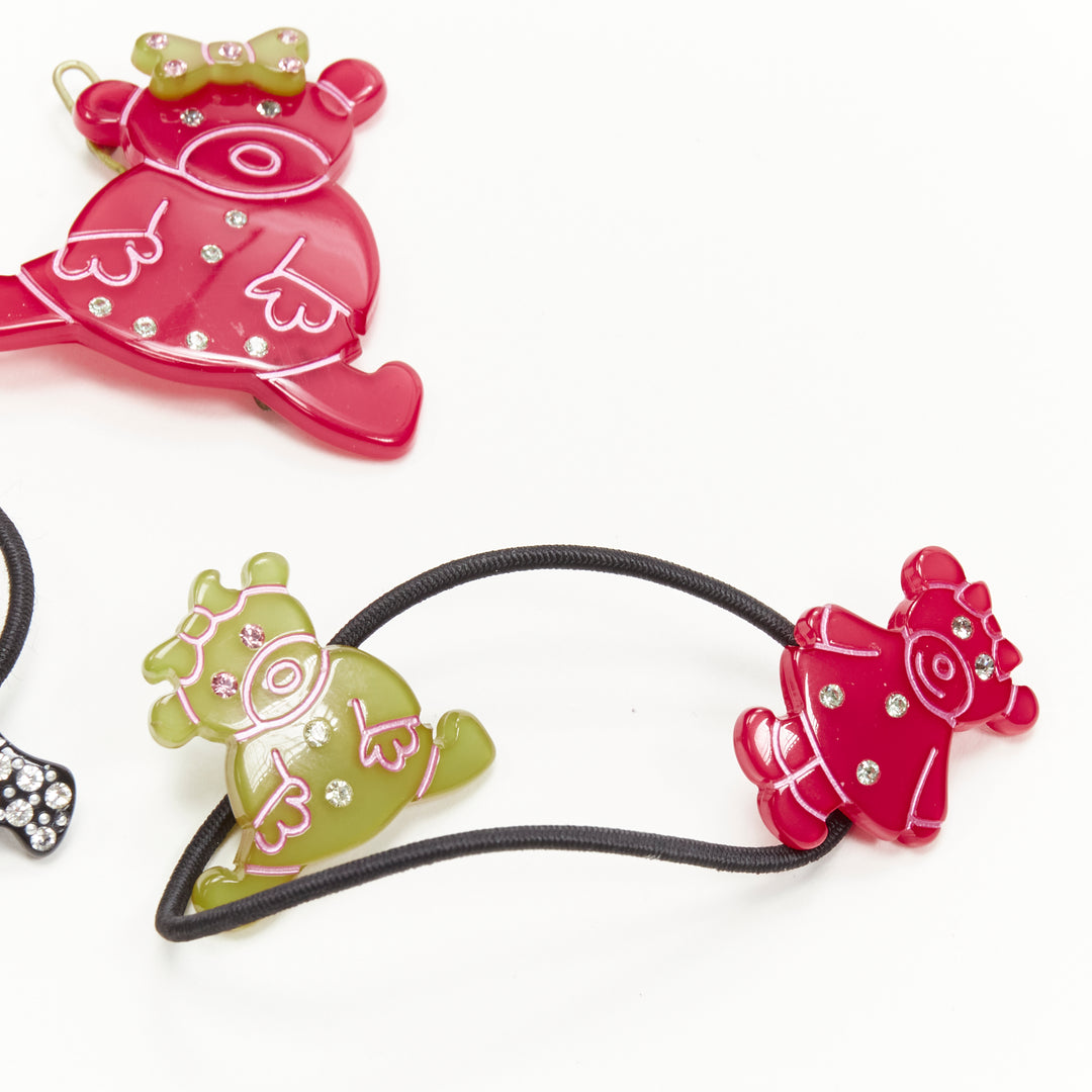 CHIC & MODE Alexandre Zouari red green black crystal teddy bear clip tie X3