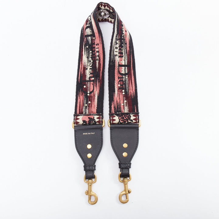 CHRISTIAN DIOR black cream ethnic embellished wide bag strap