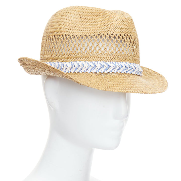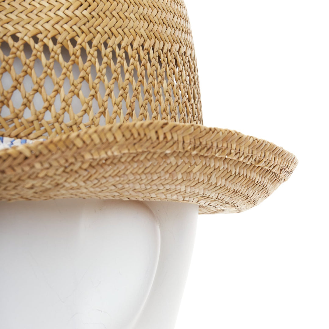 COMME DES GARCONS SHIRT 100% vegetable straw tan ribbon trim fedora hat