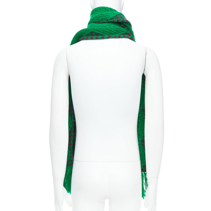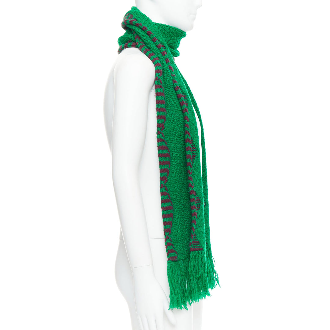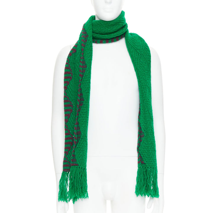 DRIES VAN NOTEN green brown knitted long wrap scarf