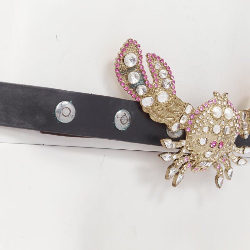 DSQUARED2 2005 gold pink crystal embellsihed crab black leather belt