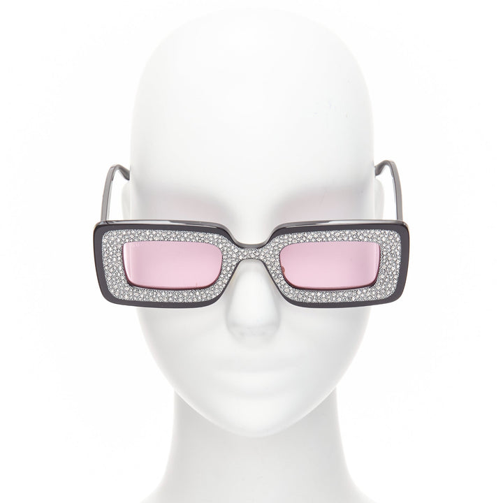 GUCCI GG0974S silver crystal frame pink lens rectangular sunnies