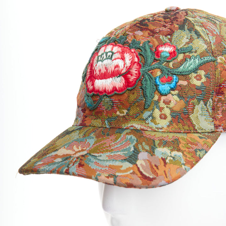 GUCCI green brown floral jacquard embroidered baseball cap 57cm S