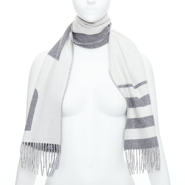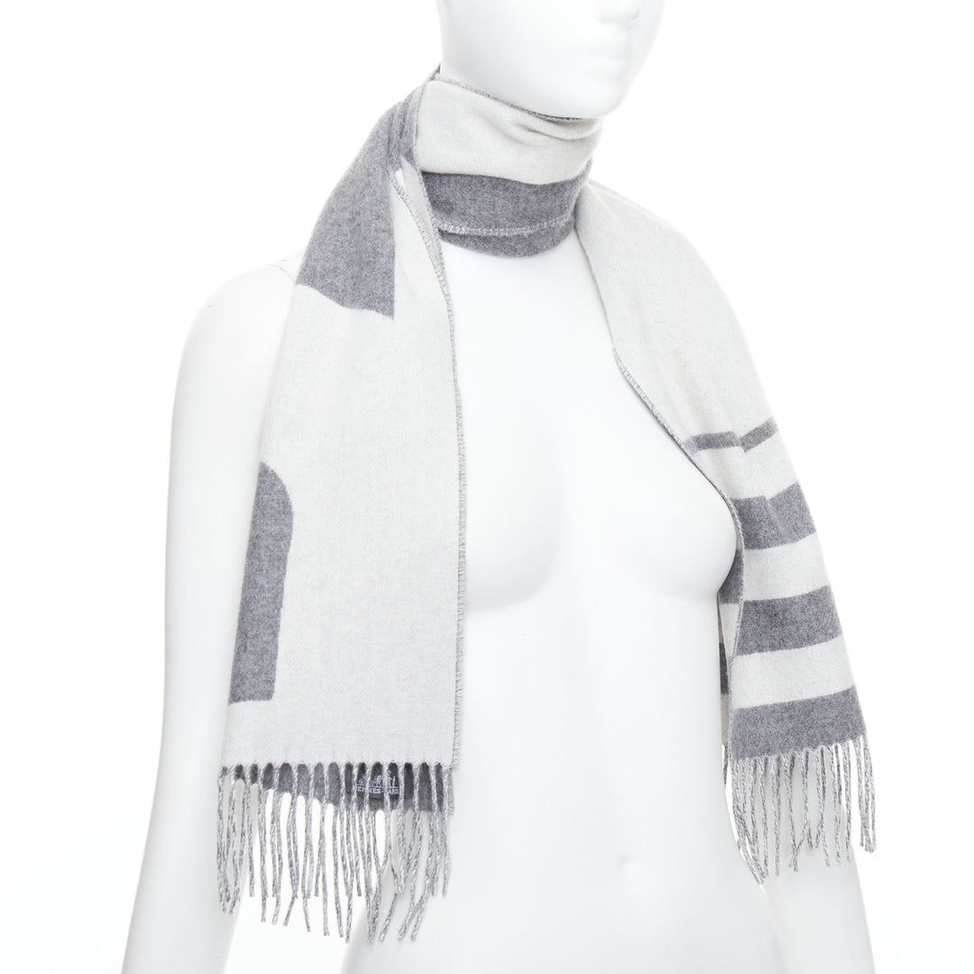 HERMES 100% cashmere abstract horse head fringe wool scarf
