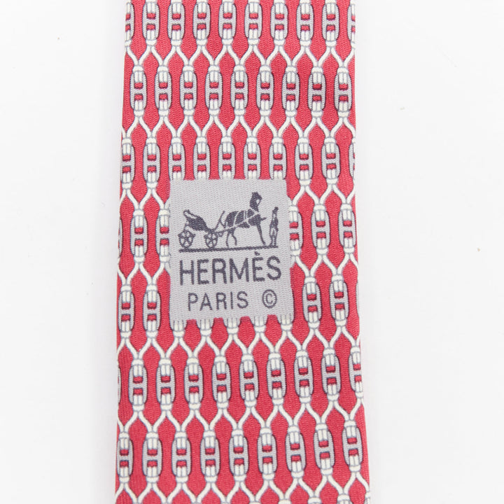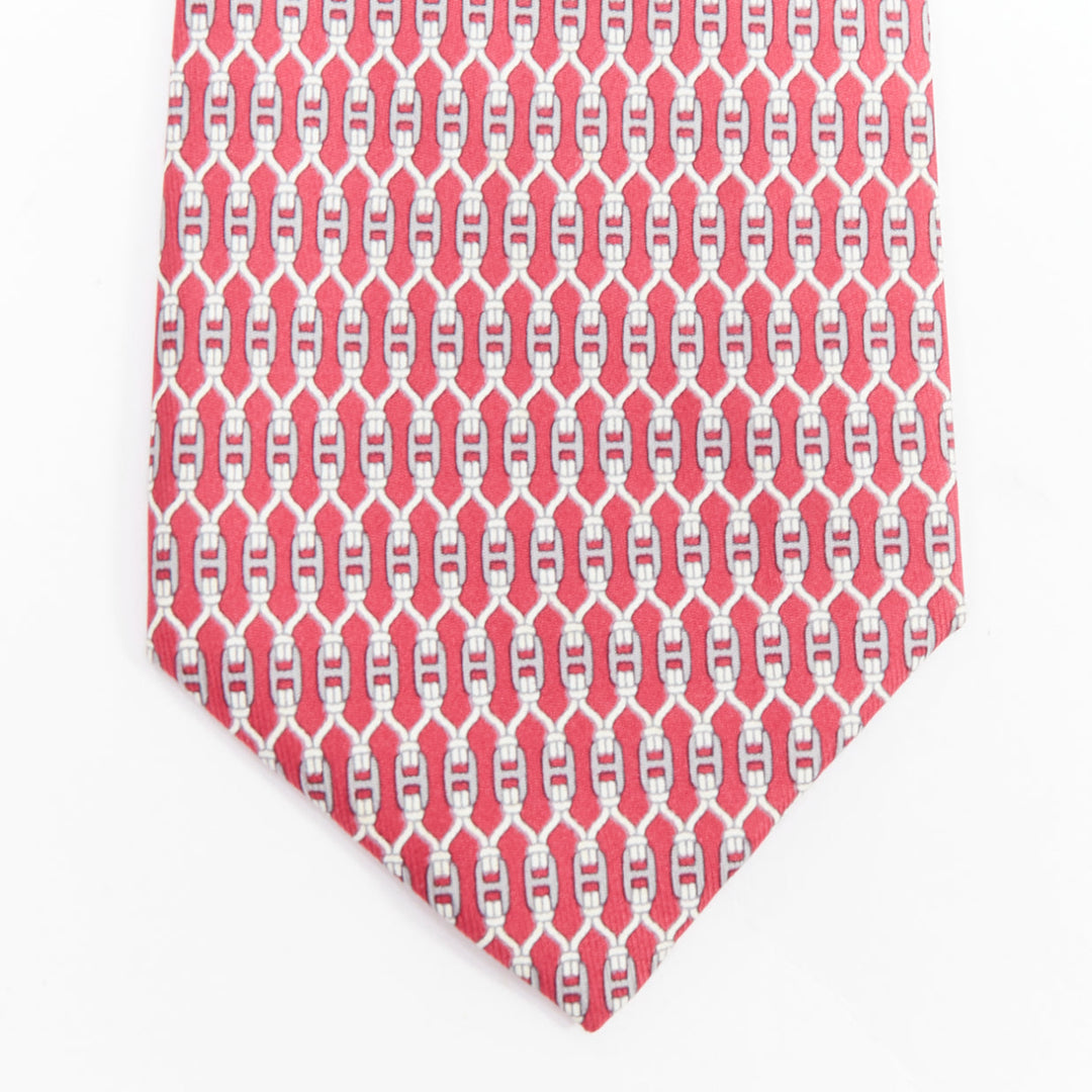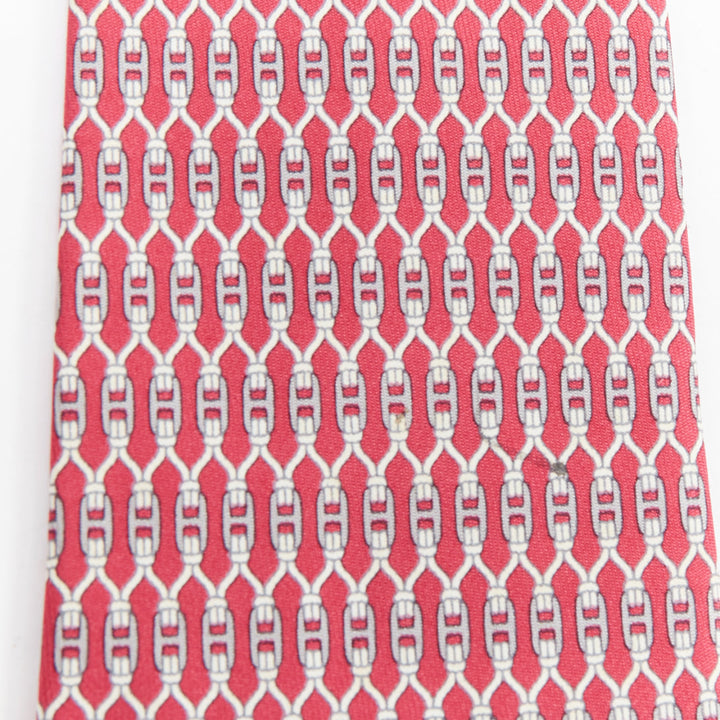 HERMES 7199 UA red grey signature H chain lock print silk tie