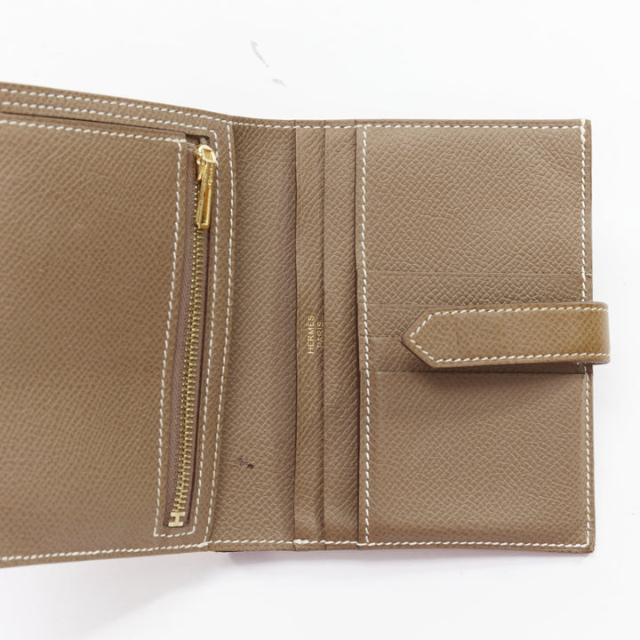 HERMES Bearn Compact etaupe brown GHW H strap epsom wallet