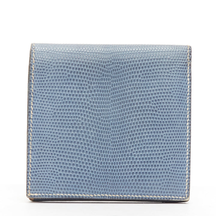HERMES blue scaled leather silver logo bifold coins wallet