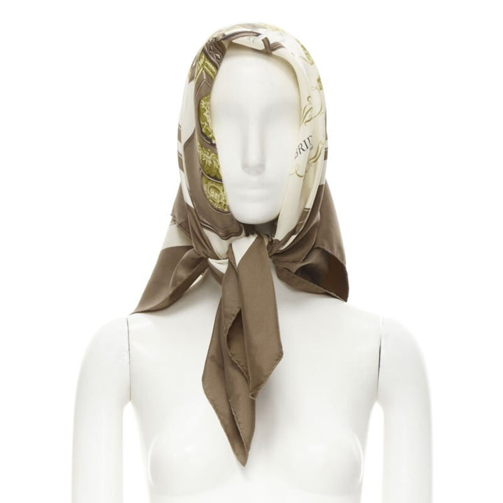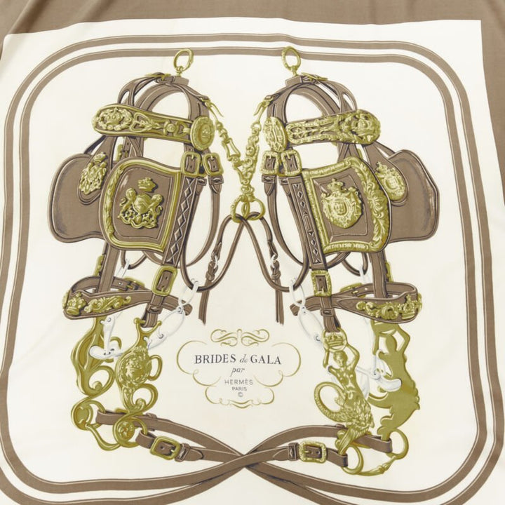 HERMES Hugo Grygkar Brides de Gala brown white print silk scarf 90cm