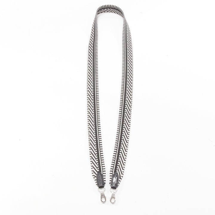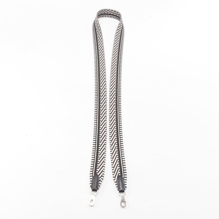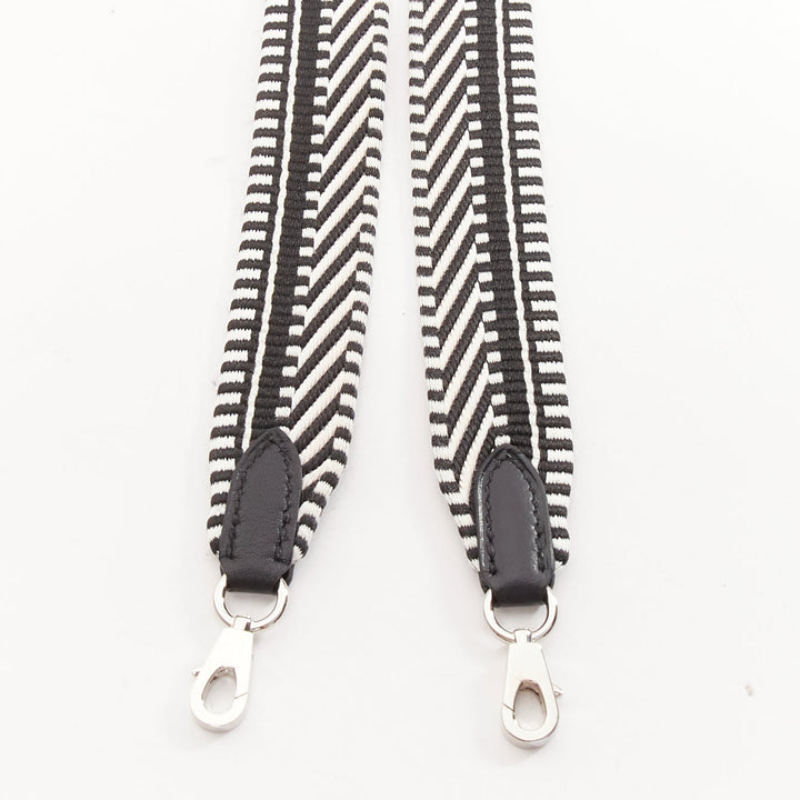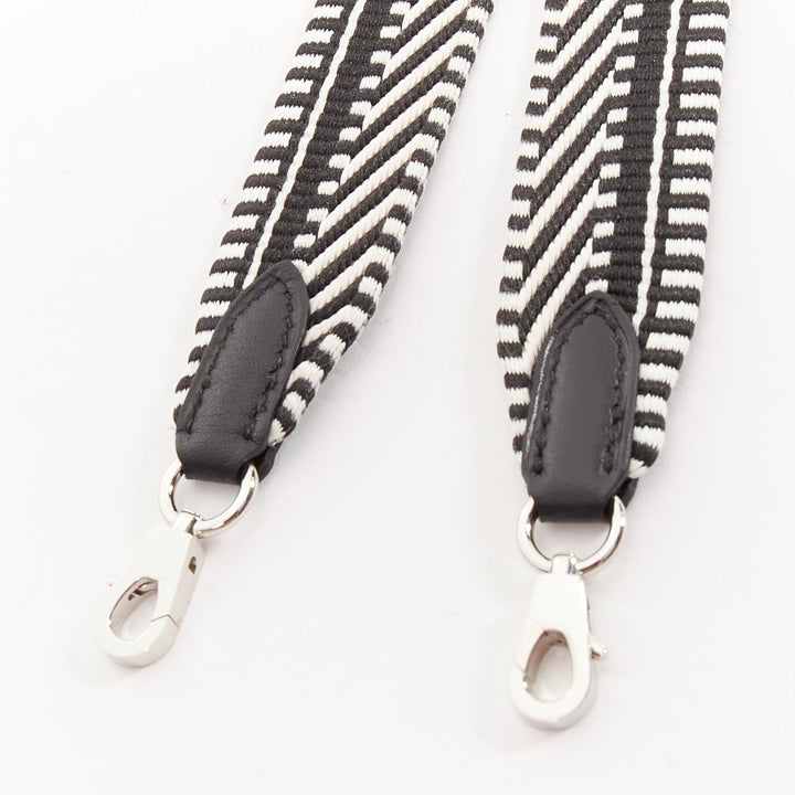 HERMES Sangle 25 black white chevron stripes woven silver hardware bag strap