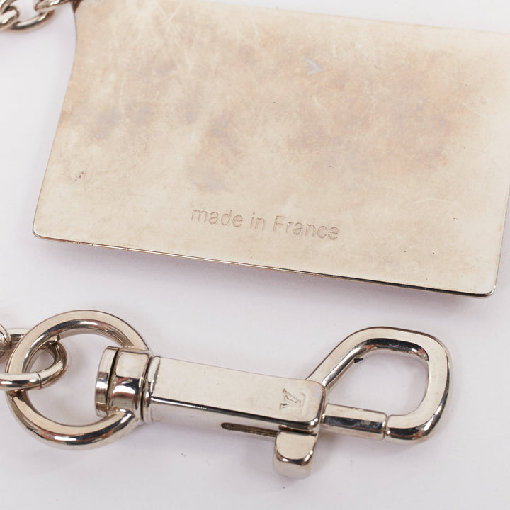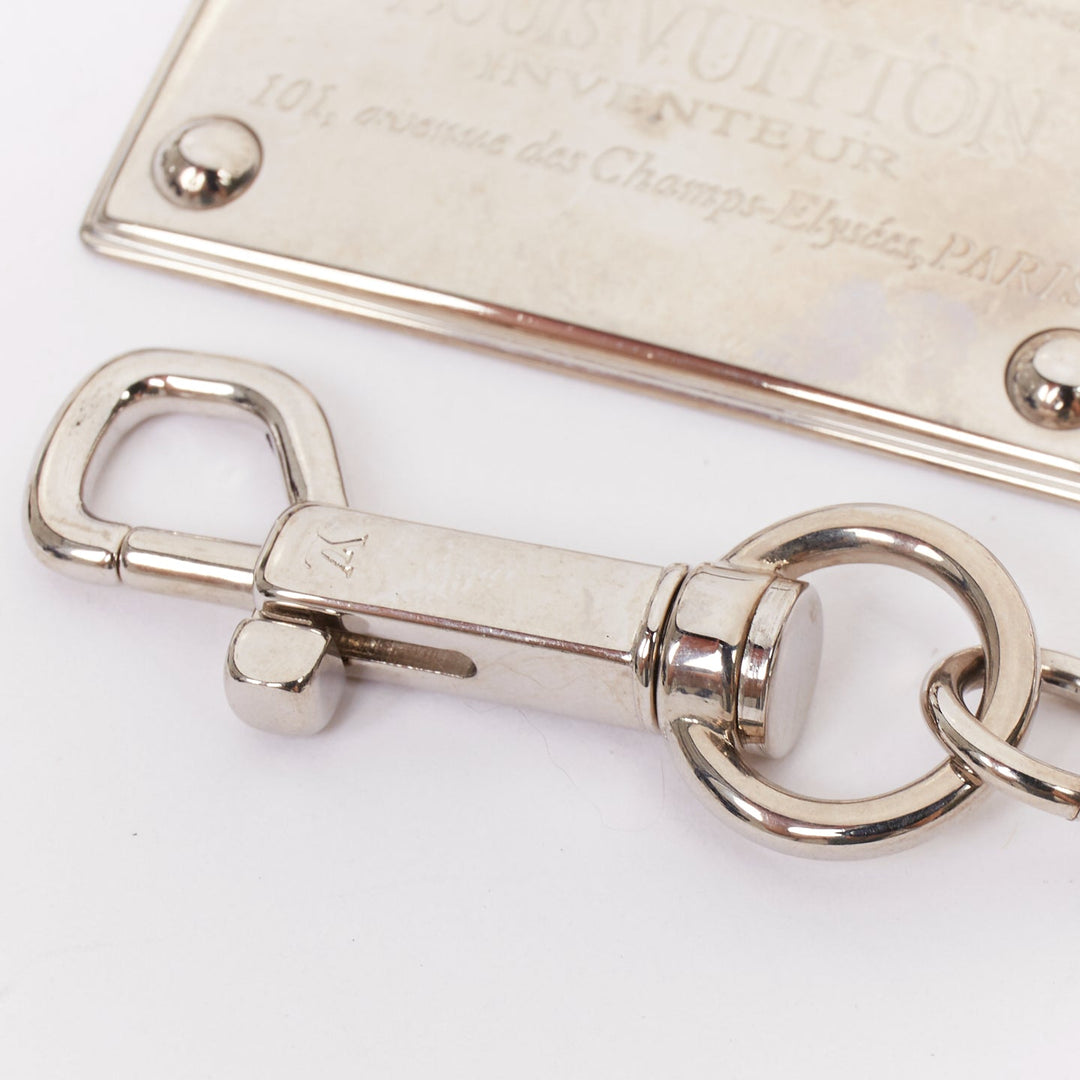 LOUIS VUITTON Inventeur silver tone plate chain keychain bag charm