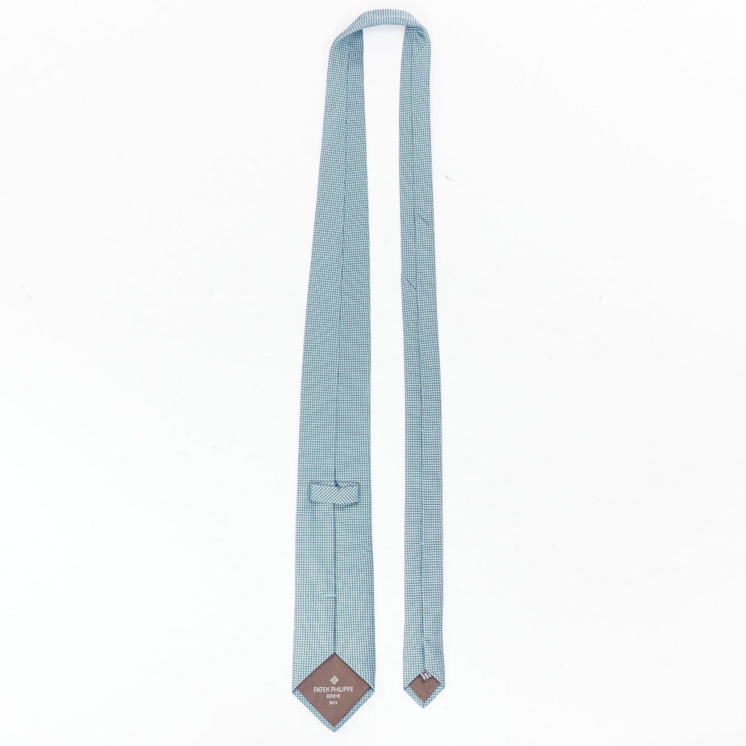 PATEK PHILLIPE 2011 100% silk blue grid jacquard wide dress tie