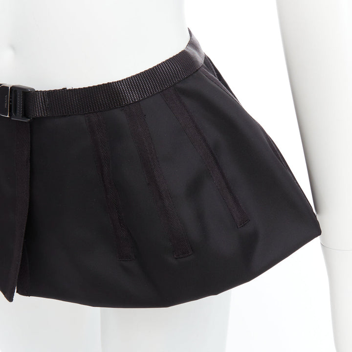 PRADA 2008 black nylon silver logo buckle fabric peplum belt IT38 XS