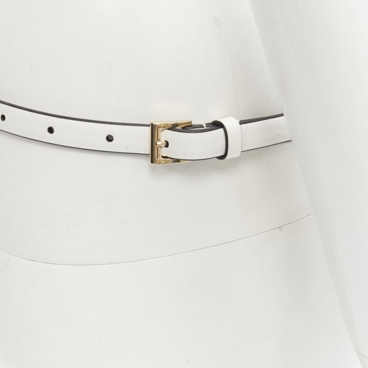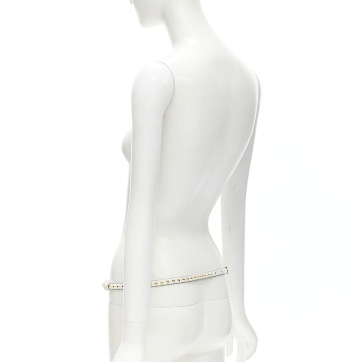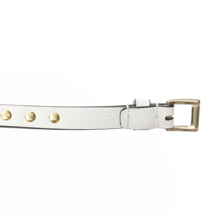PRADA white leather bow gold punk stud skinny belt 1CC338 80cm 32"