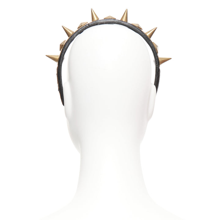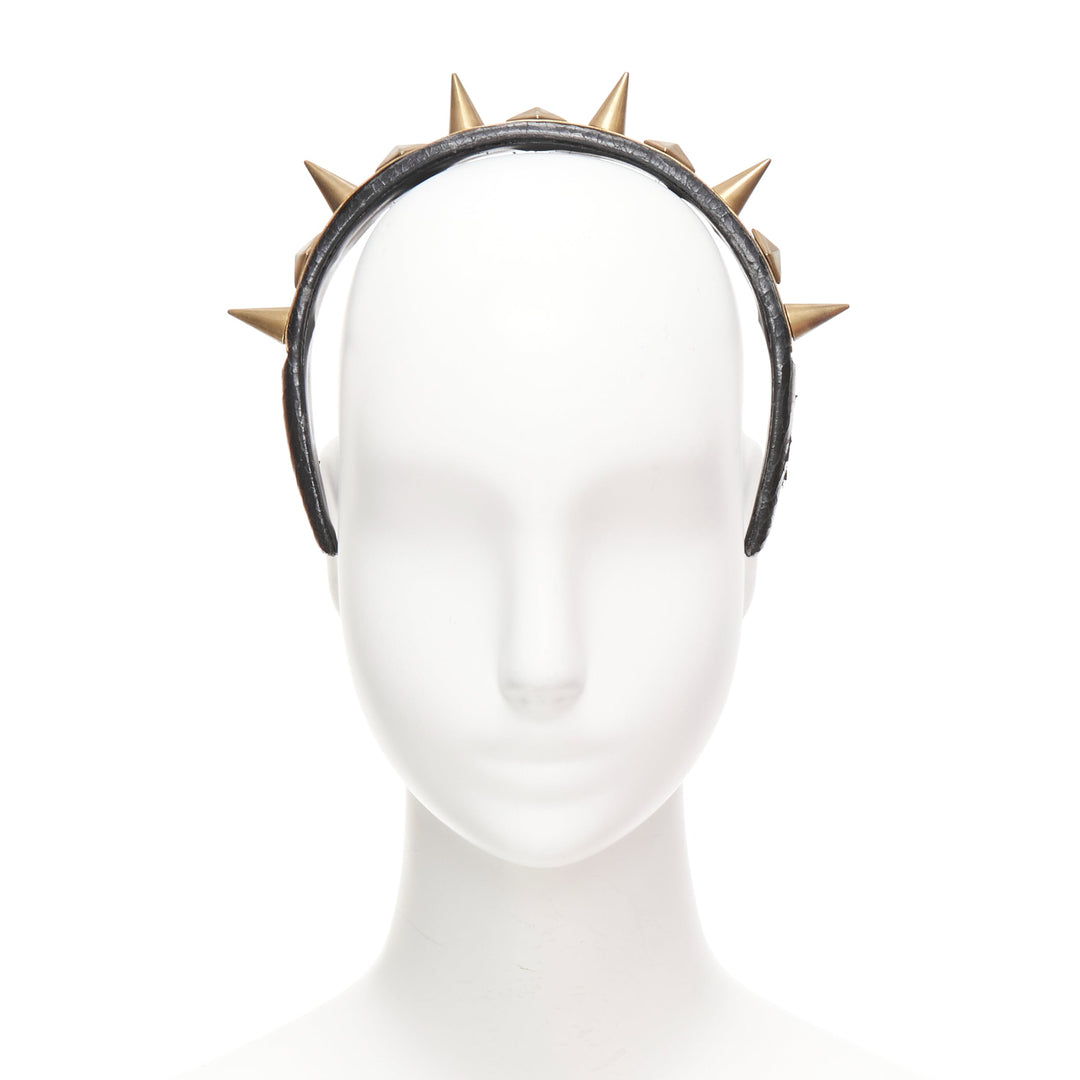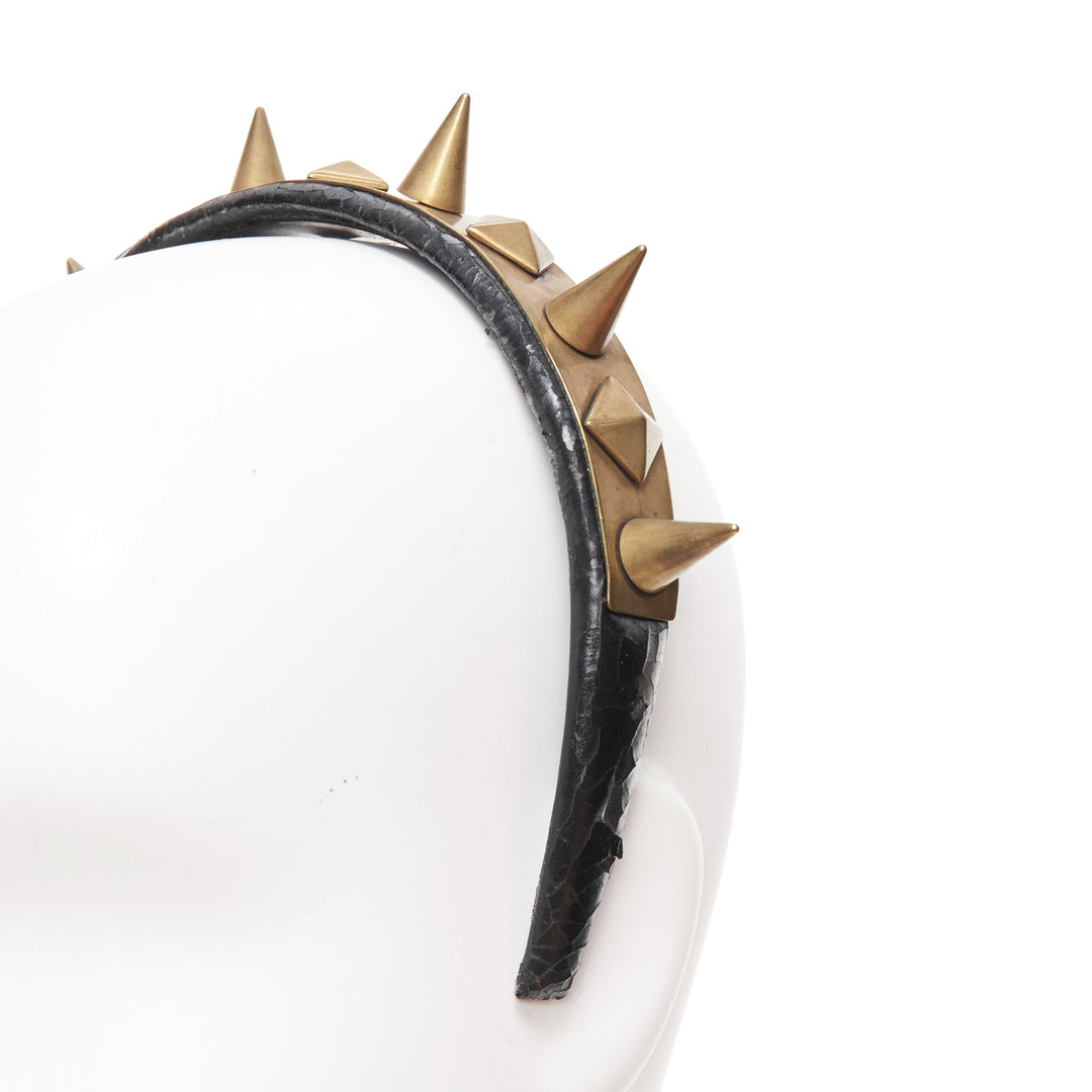 rare GIVENCHY Riccardo Tisci antique gold spike black leather headband