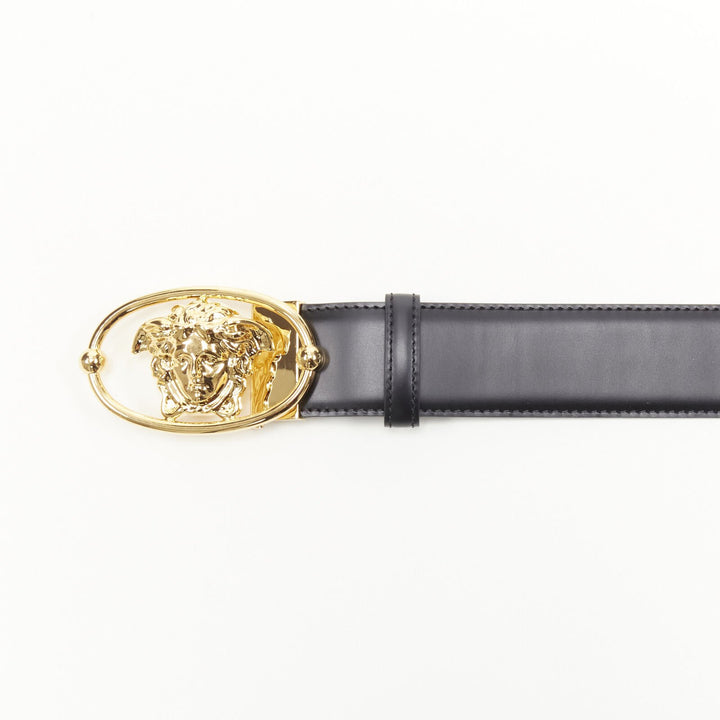 VERSACE La Medusa Insignia gold oval buckle black leather belt 100cm 38-42"