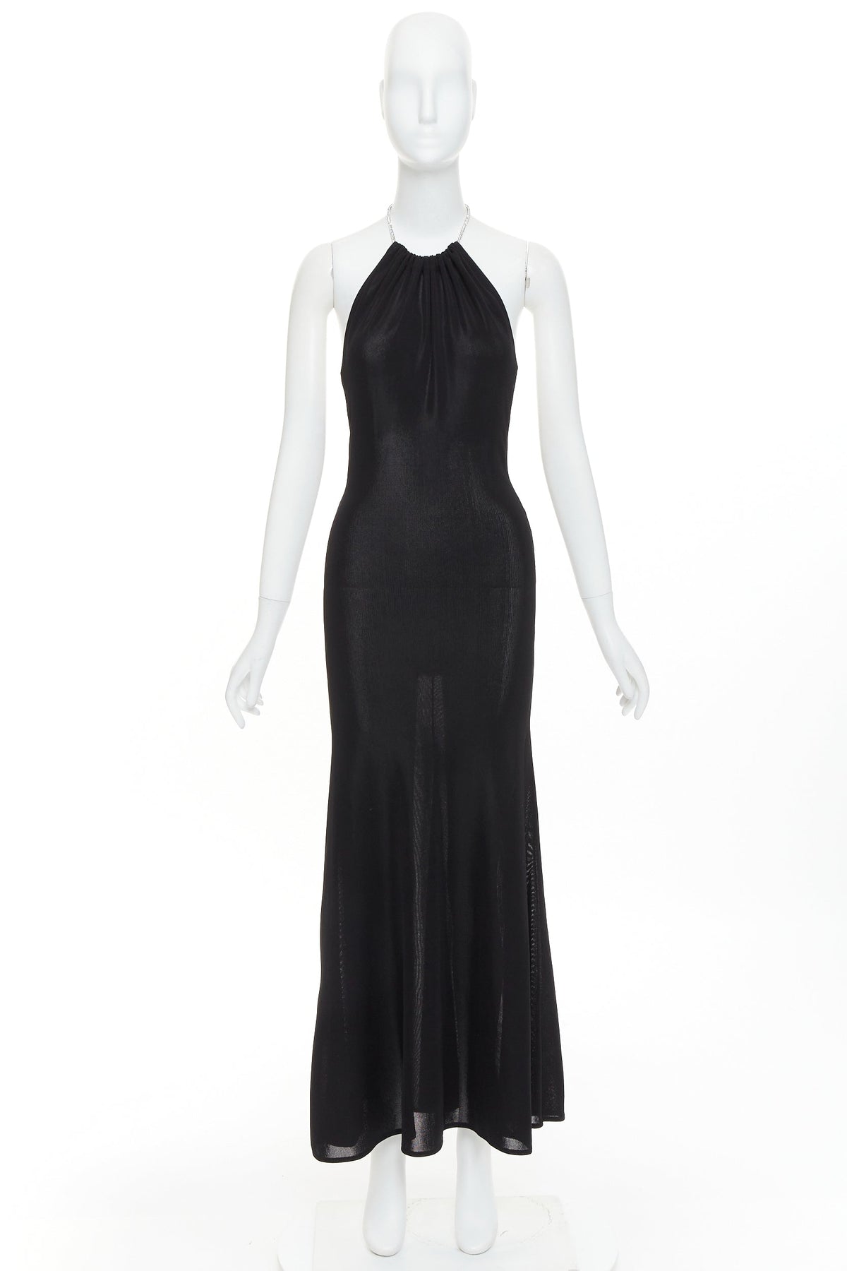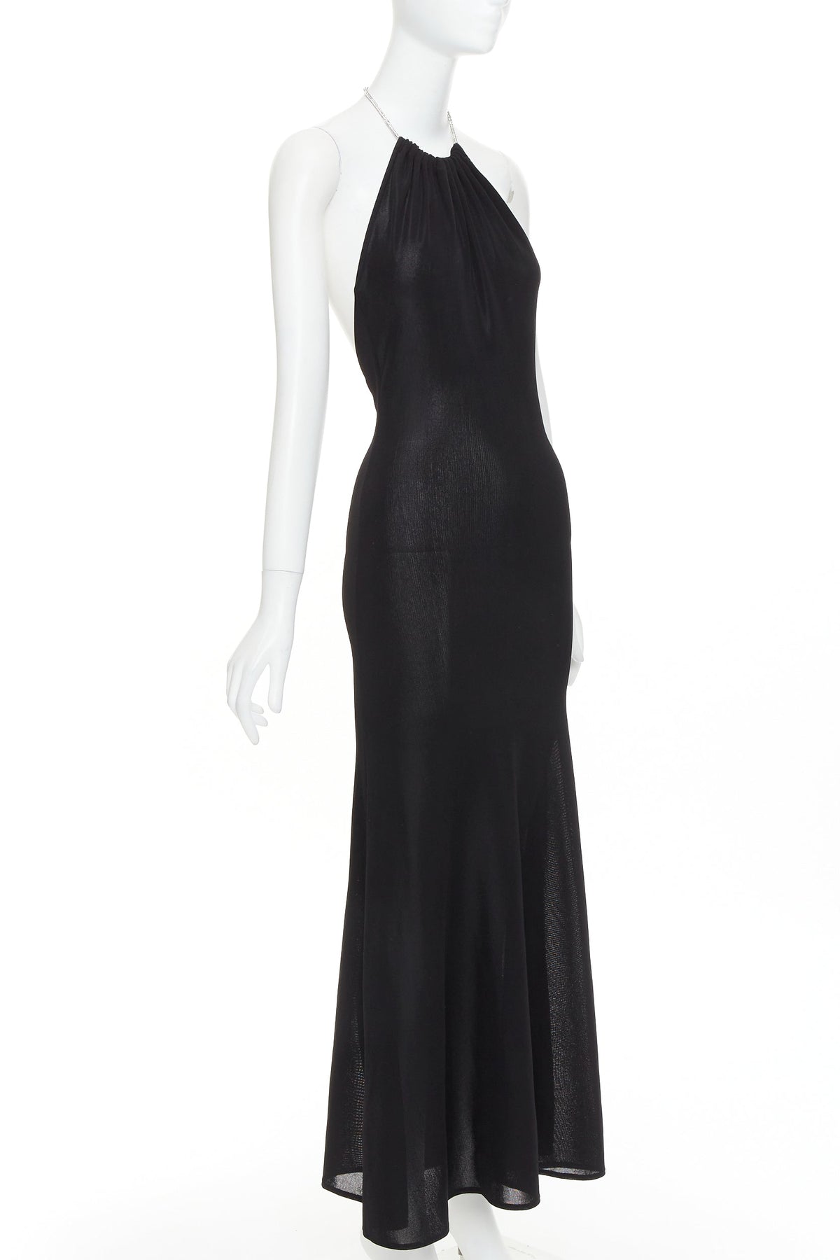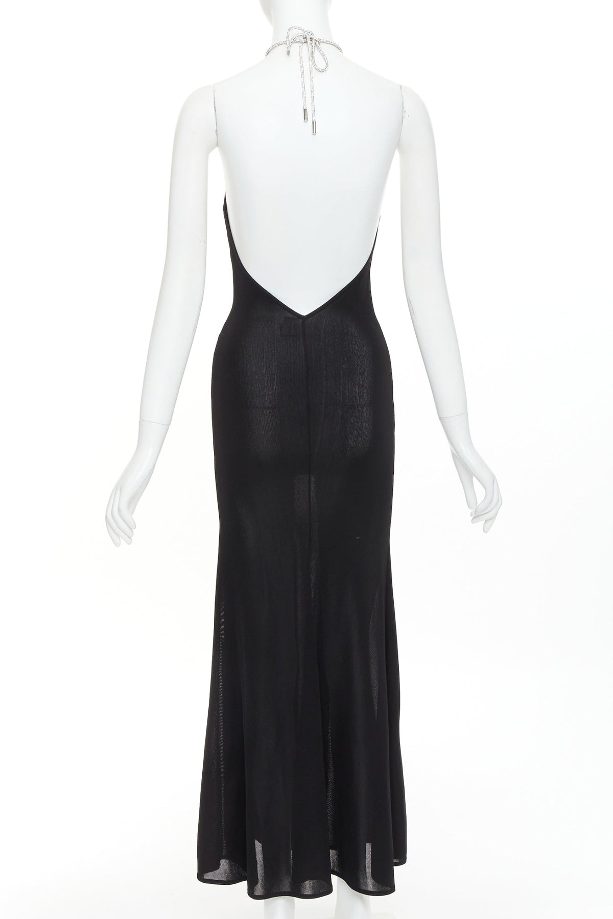 ALEXANDRE VAUTHIER black fine knit crystal encrusted rope halter tie open back dress