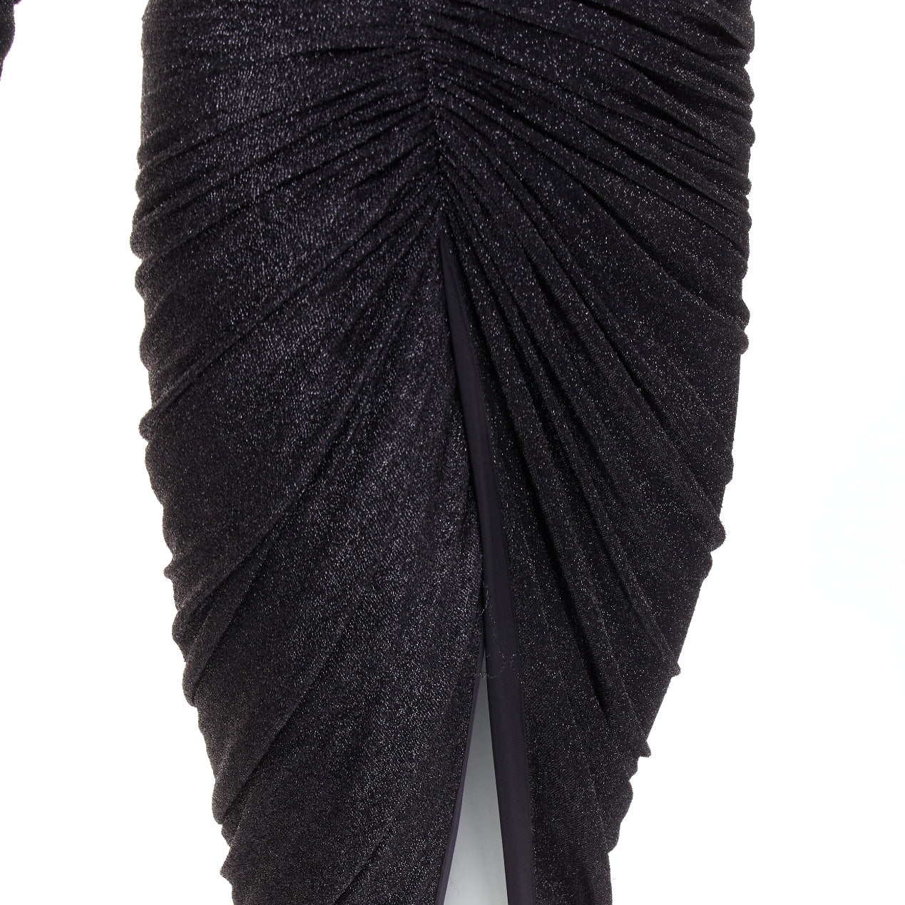 ALEXANDRE VAUTHIER black metallic lurex Power shoulder padded draped slit gown