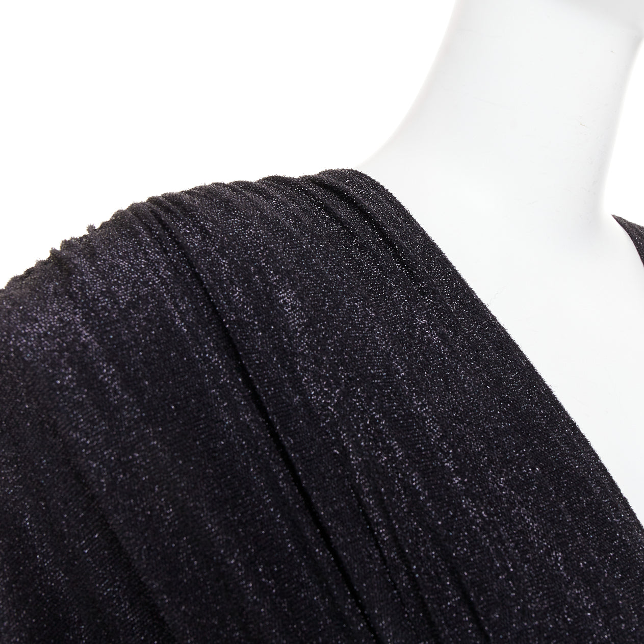 ALEXANDRE VAUTHIER black metallic lurex Power shoulder padded wrap draped slit gown dress