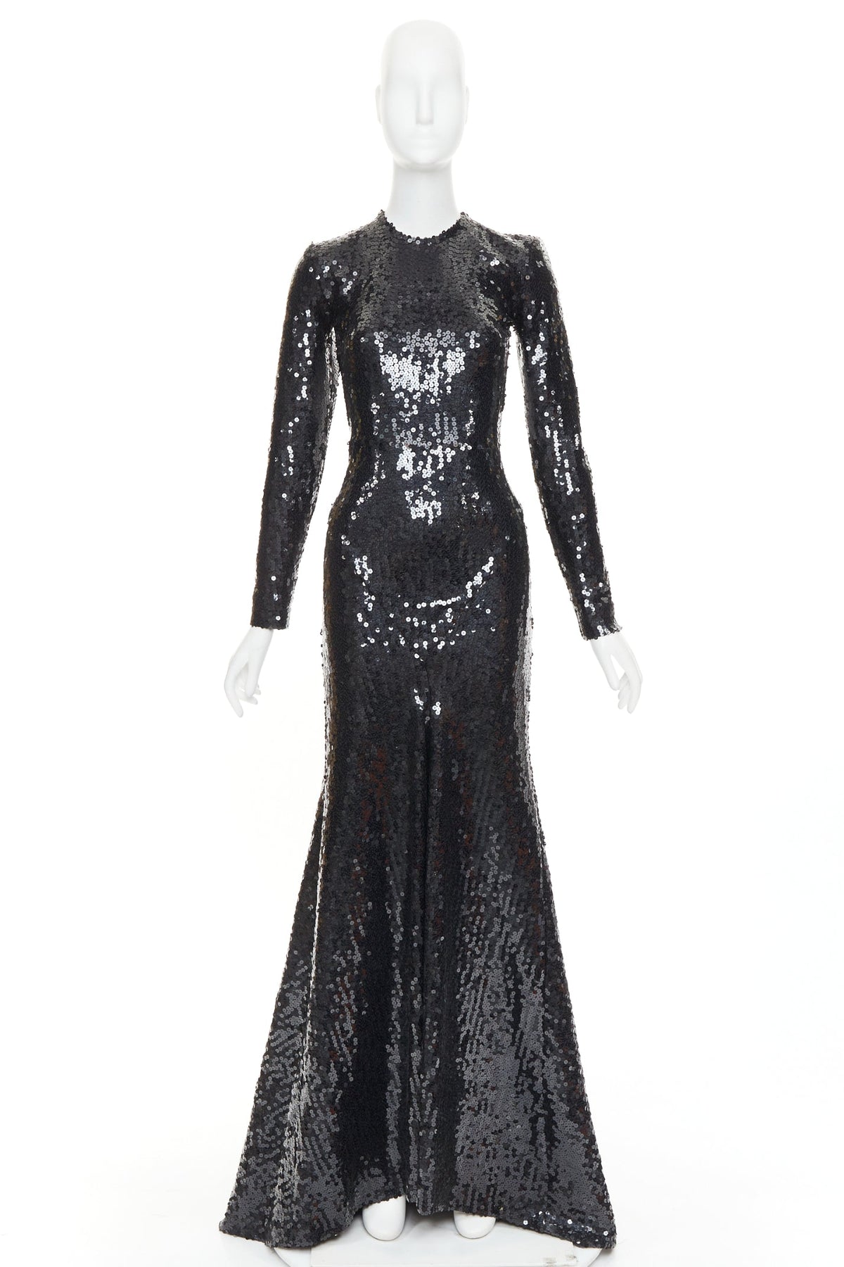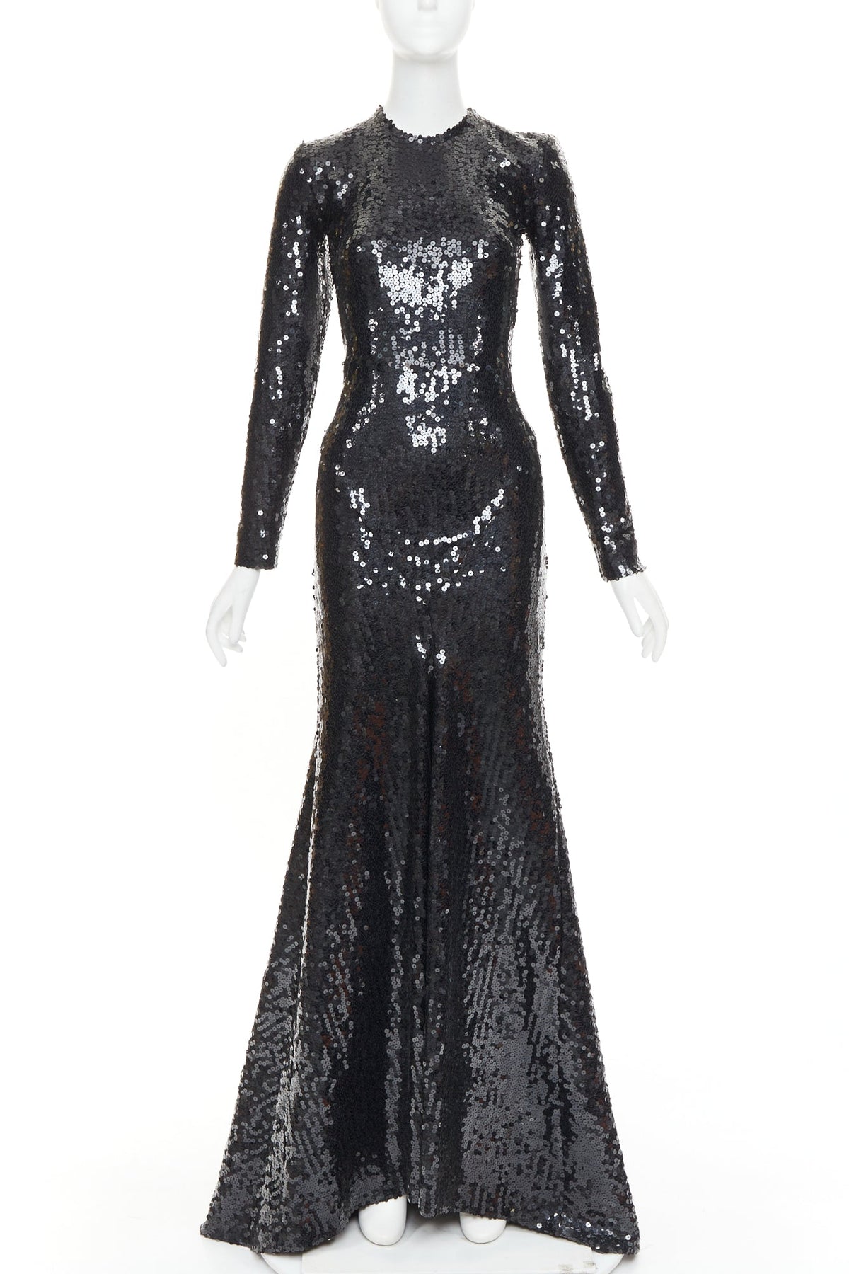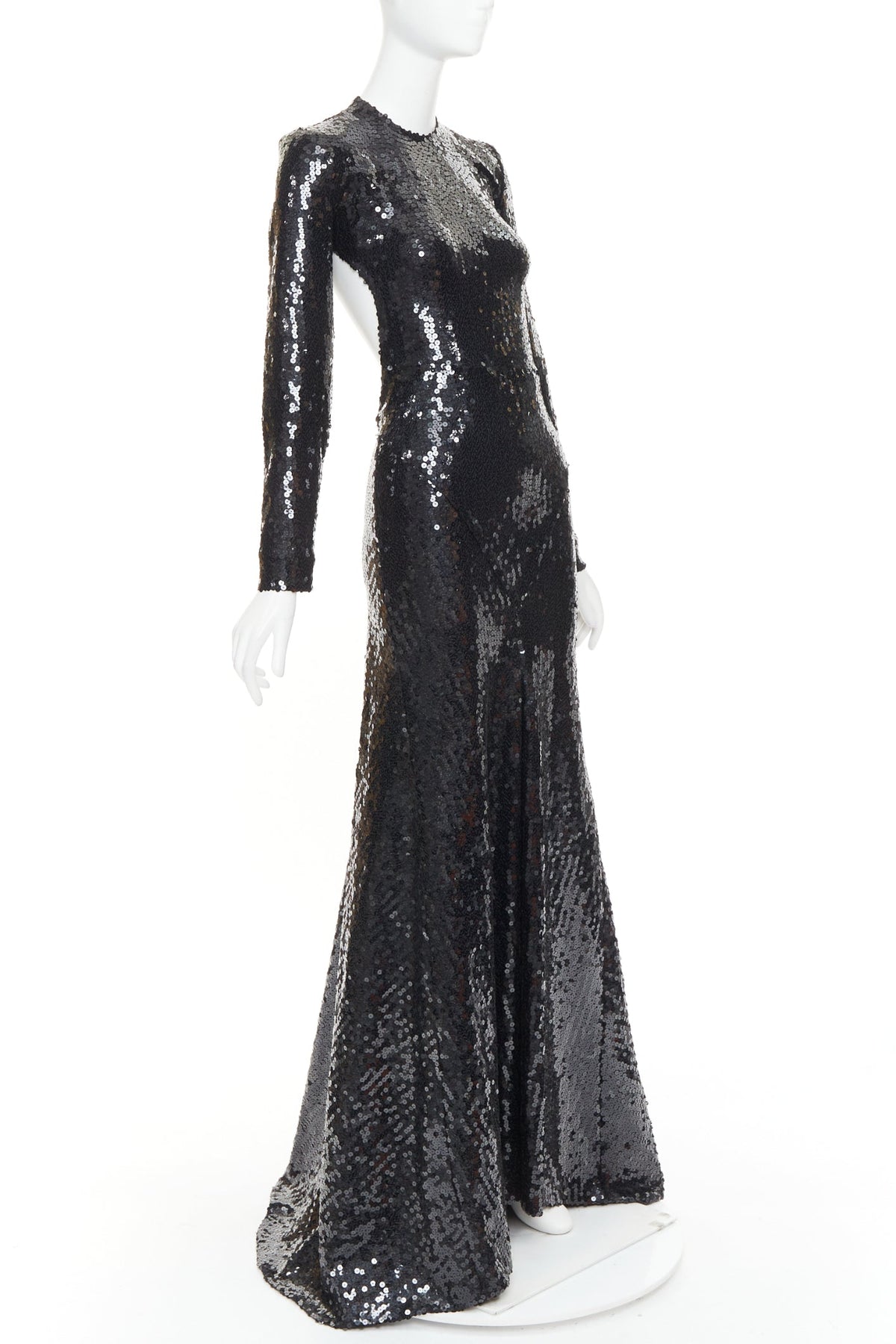 ALEXANDRE VAUTHIER black sequins long sleeve open back fishtail gown dress