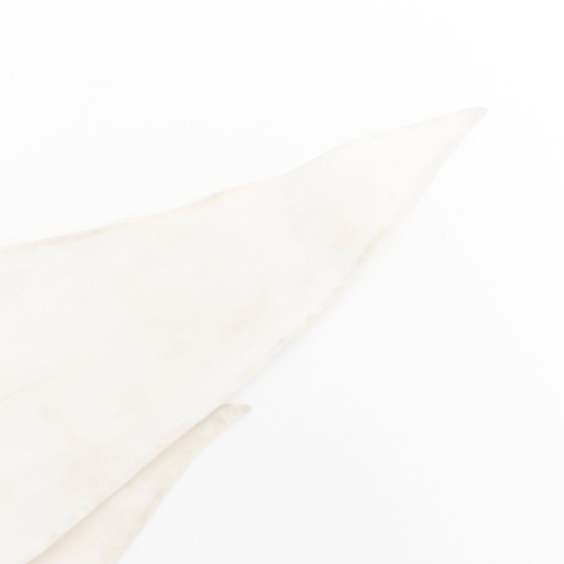 Condition: Fair, this item was pre-owned and is in fair condition. Please refer to image gallery for thorough condition check. This is a prototype sample. Composition labels are hand written. Brand tag and finishings may differ from final production. If this style was never mass-produced, it remains a one-of-one unique piece. Stain is present on the white satin front, and a fixed tear exists on the hidden white layer beneath; both are concealed by the overall design. Additionally, there is a slight tear at the back of the dress and the white train is dirty.