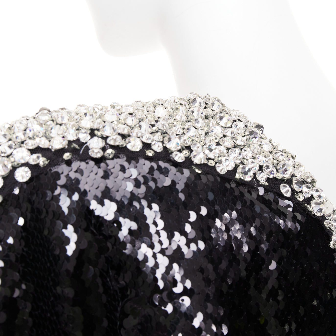 ALEXANDRE VAUTHIER COUTURE SS2021 black sequin silver crystal bordered one shoulder dress