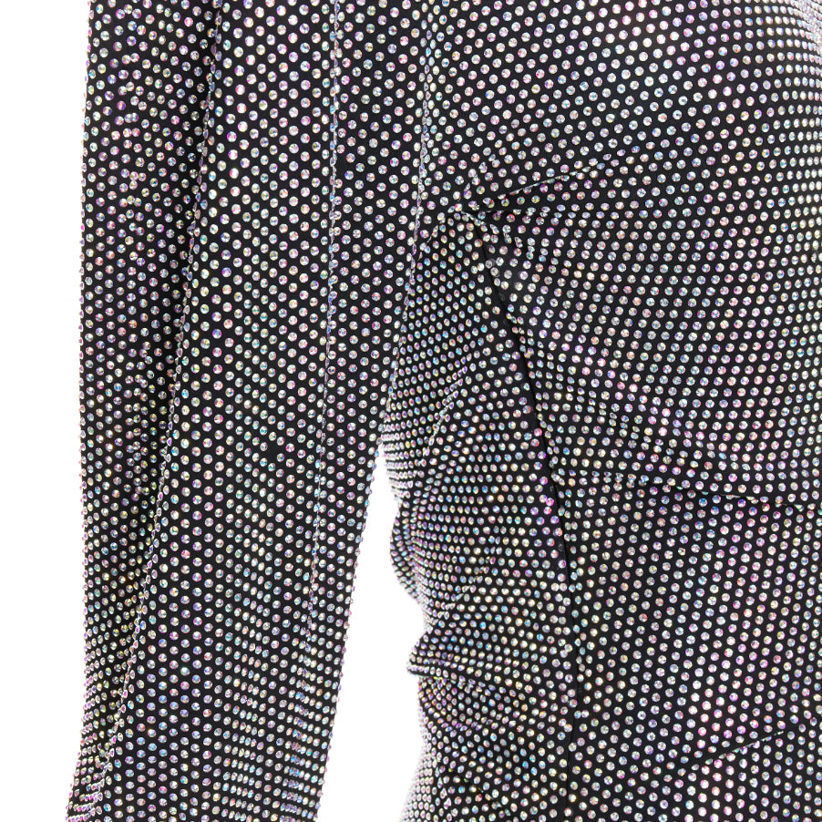 Condition: Fair, this item was pre-owned and is in fair condition. Please refer to image gallery for thorough condition check. This is a prototype sample. Composition labels are hand written. Brand tag and finishings may differ from final production. If this style was never mass-produced, it remains a one-of-one unique piece. Crystals missing at front hem, left shoulder, center back, left waist, right sleeve and right cuff. Minor glue stain at left cuff.
