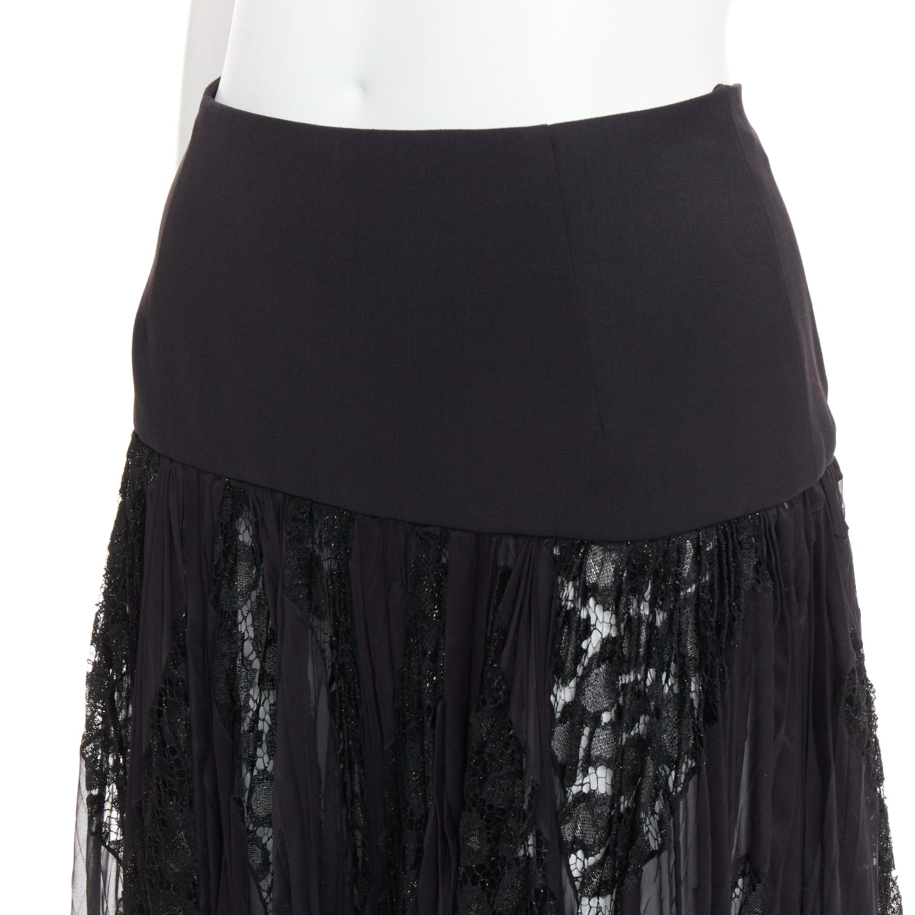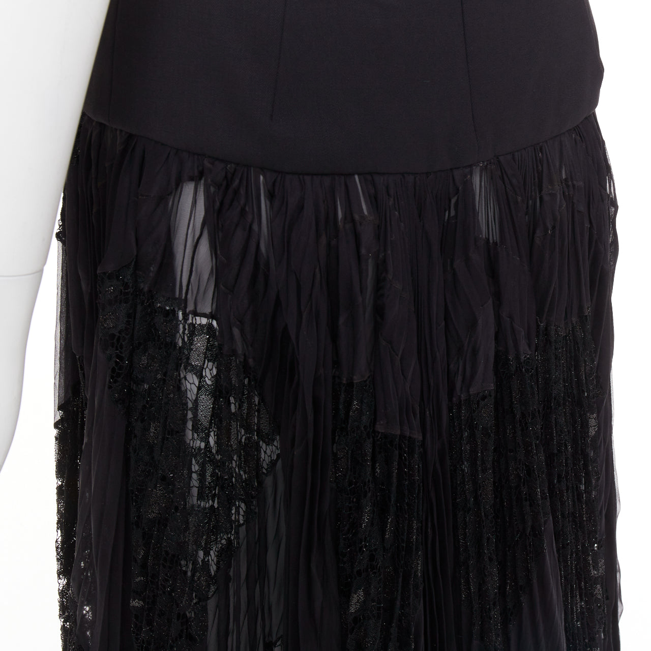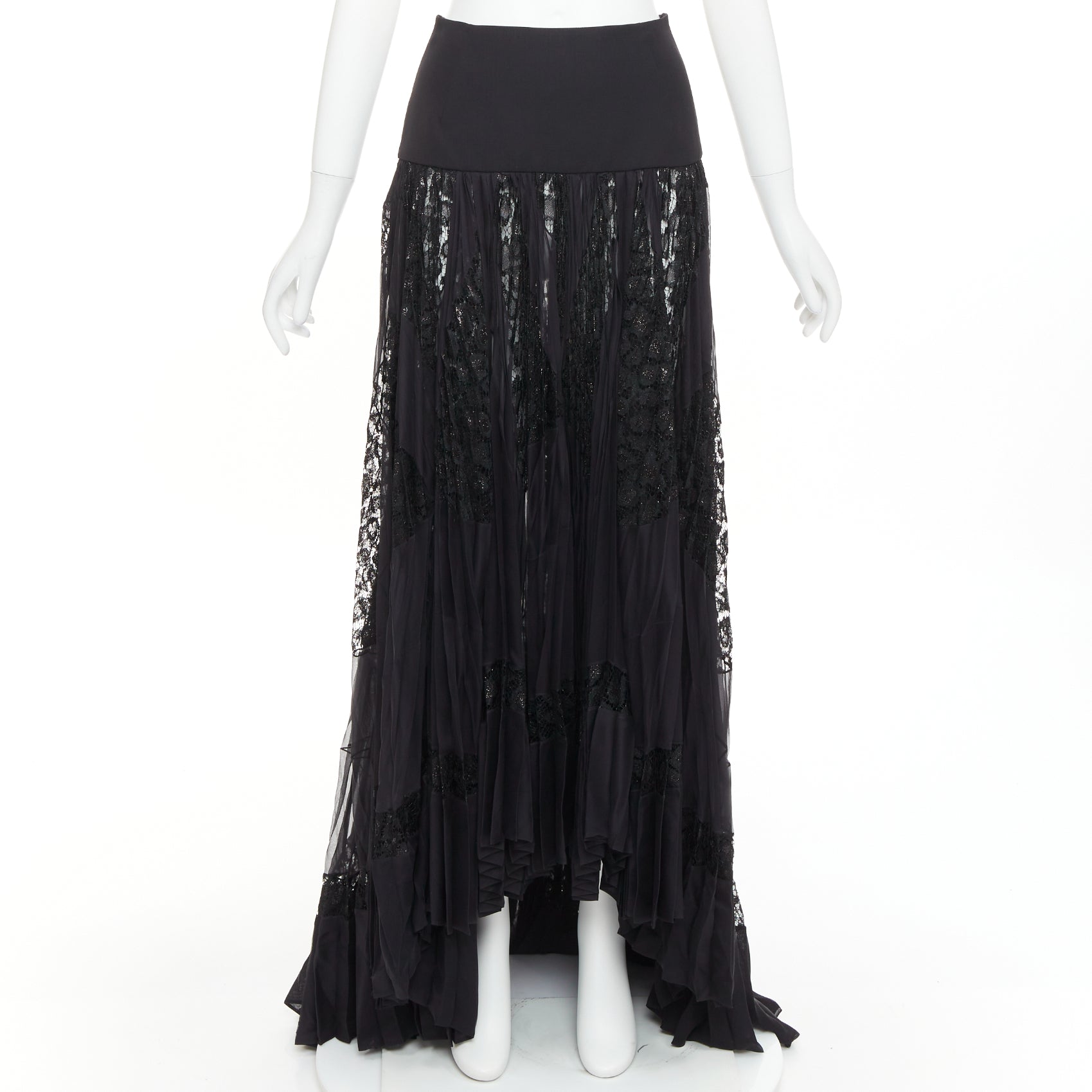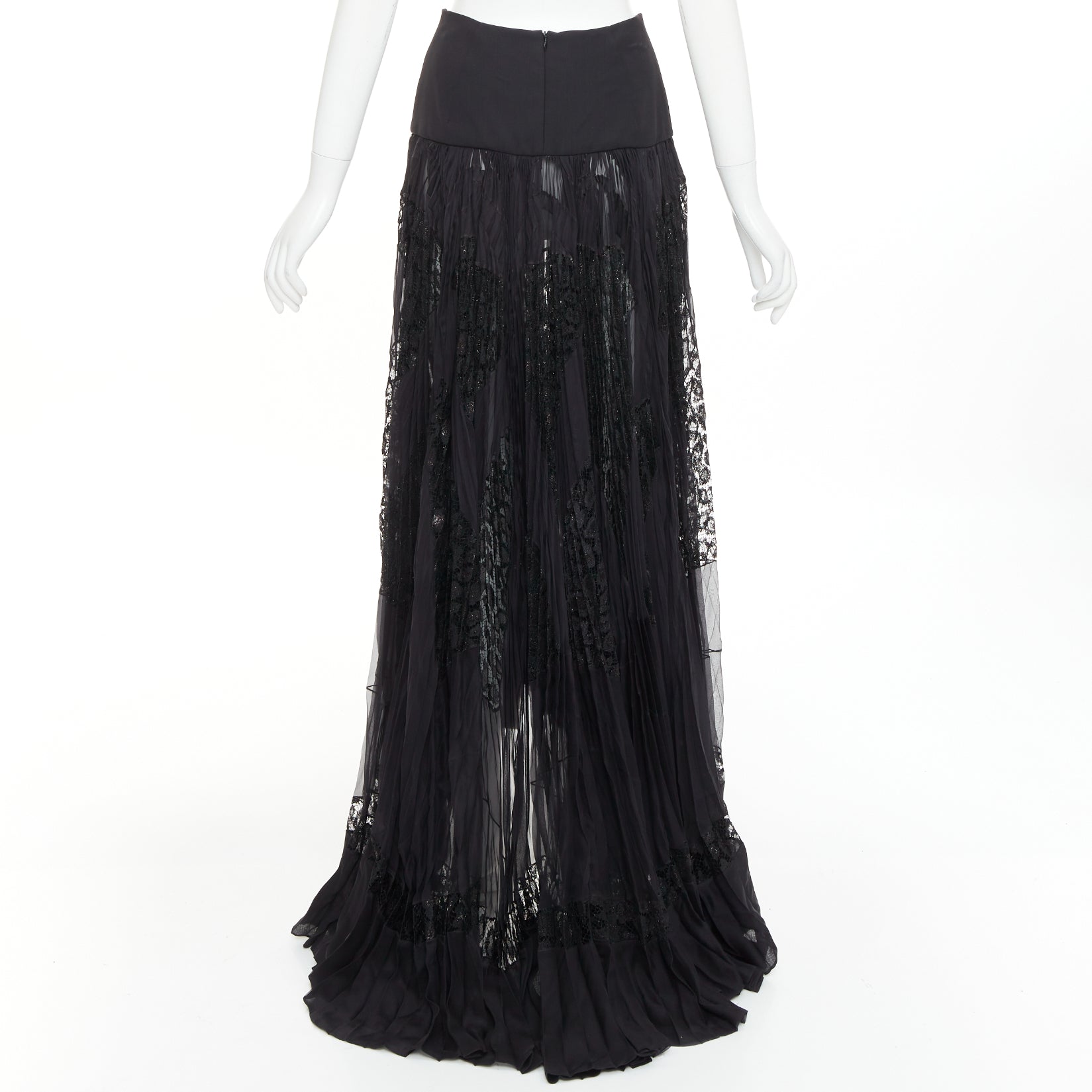 rare ALEXANDRE VAUTHIER COUTURE AW2018 Runway black leopard spot lace panelled pleated maxi skirt