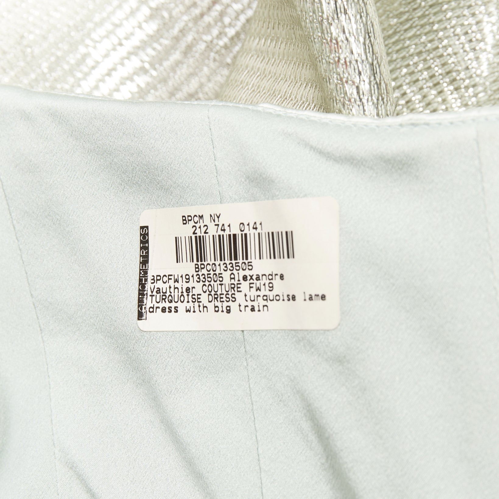 rare ALEXANDRE VAUTHIER COUTURE AW2019 Runway turquoise lame drape off shoulder train gown