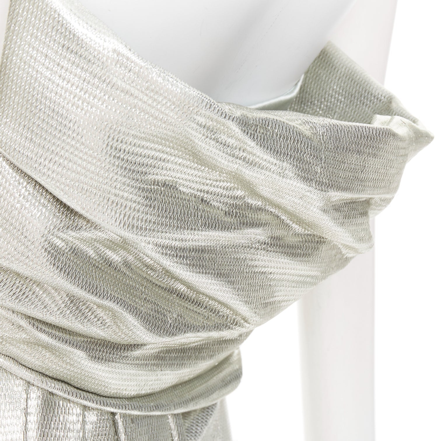 rare ALEXANDRE VAUTHIER COUTURE AW2019 Runway turquoise lame drape shoulder gown