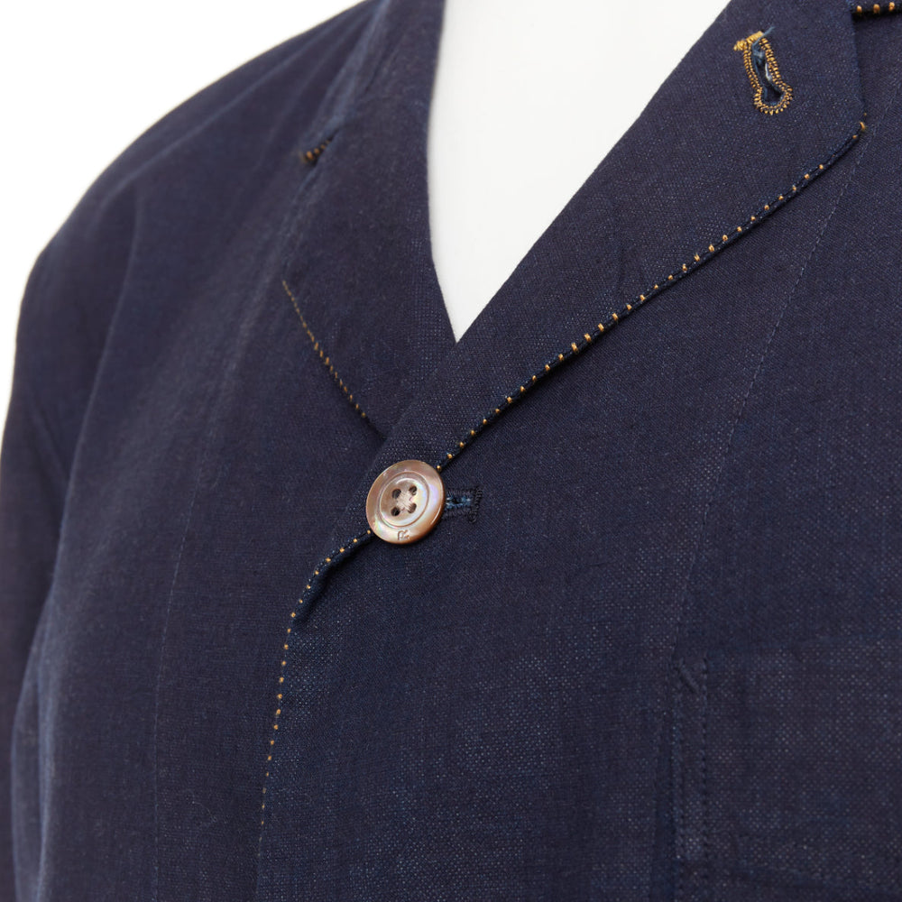 45R JAPAN indigo cotton 3-pocket yellow topstitched shirt jacket blazer JP4 XL