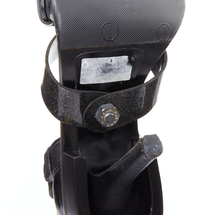 ACNE STUDIOS black leather silver buckle deconstructed high heel sandals EU37