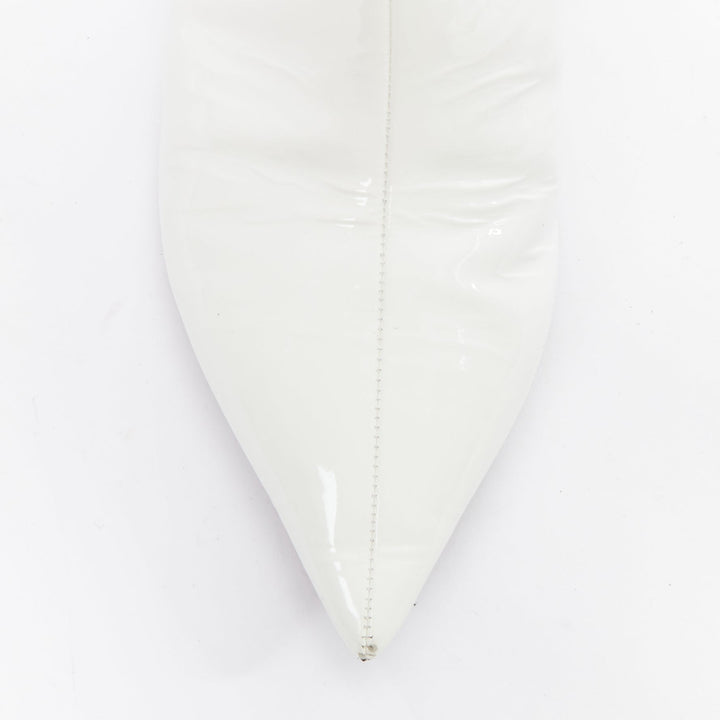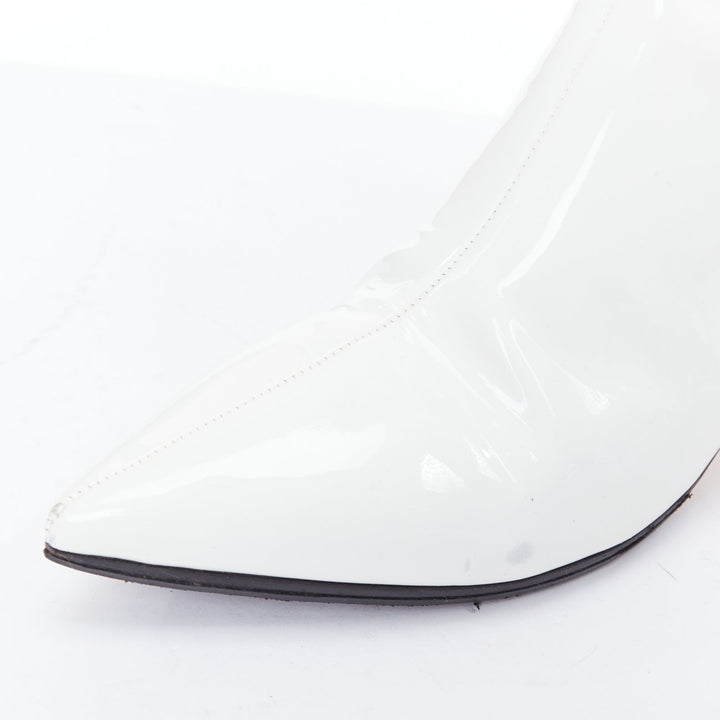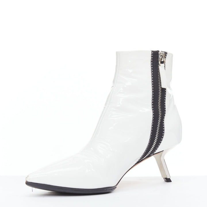 ALCHIMIA DI BALLIN side striped white patent leather silver kitten booties EU38.5