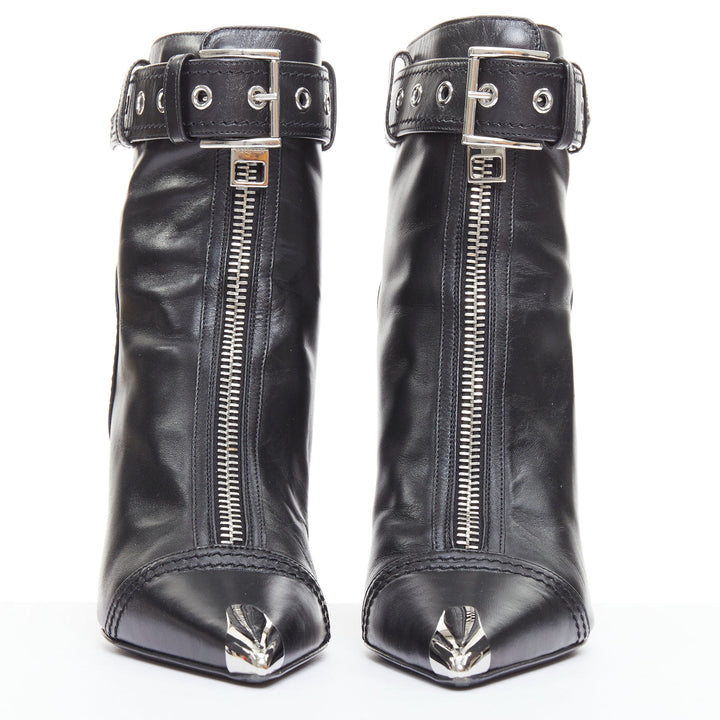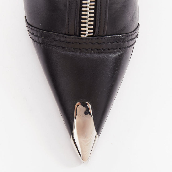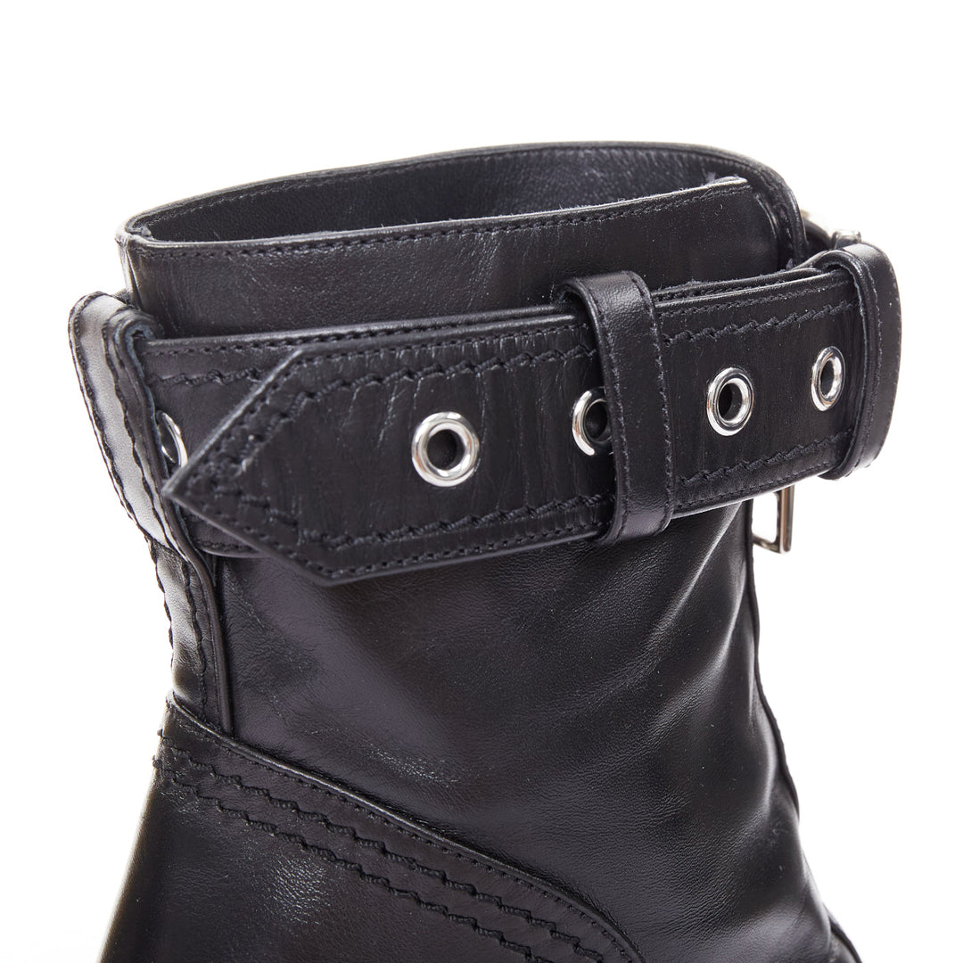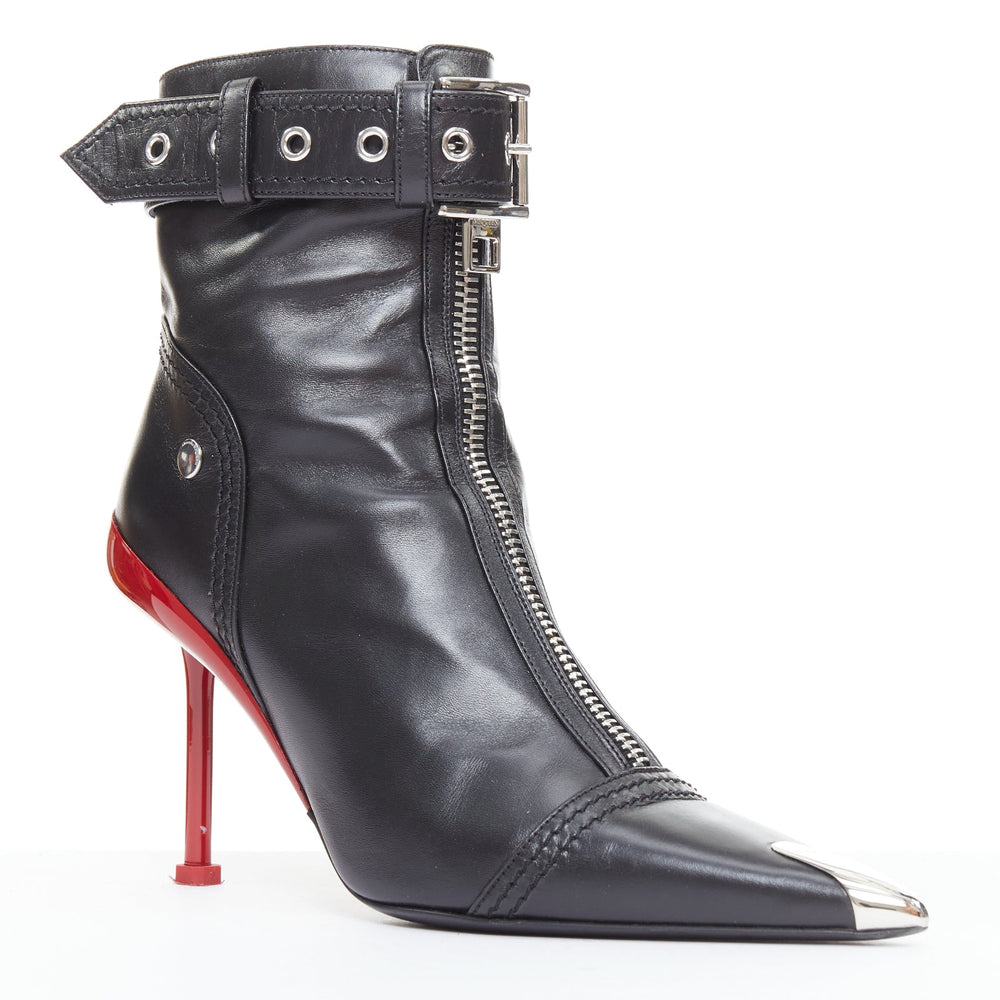 ALEXANDER MCQUEEN Slash black leather biker style red heeled boots EU39