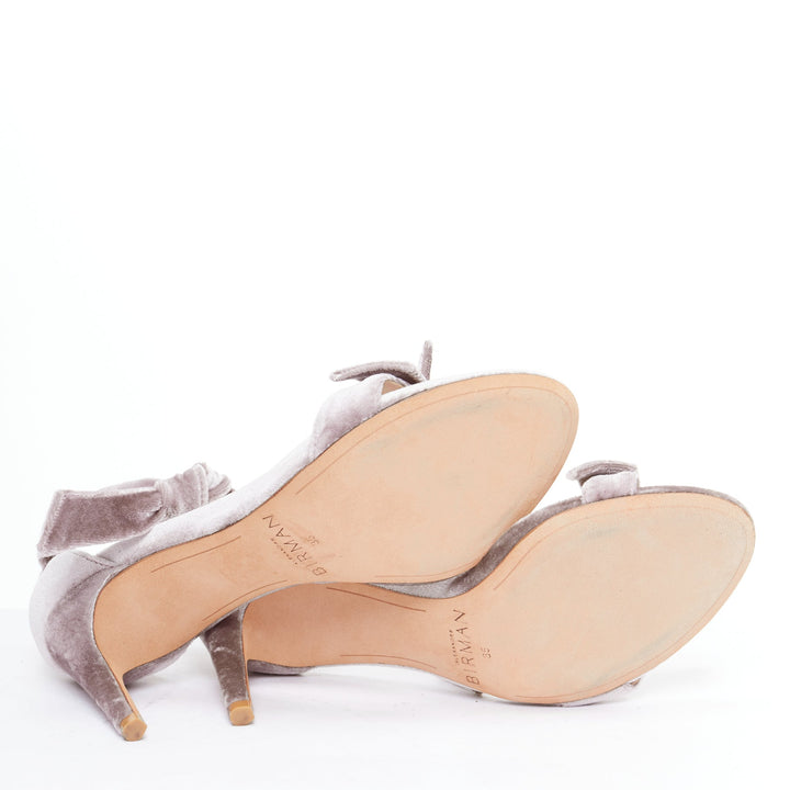 ALEXANDRE BIRMAN Clarita blush pink velvet bow tie sandal heels EU35
