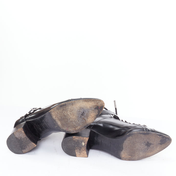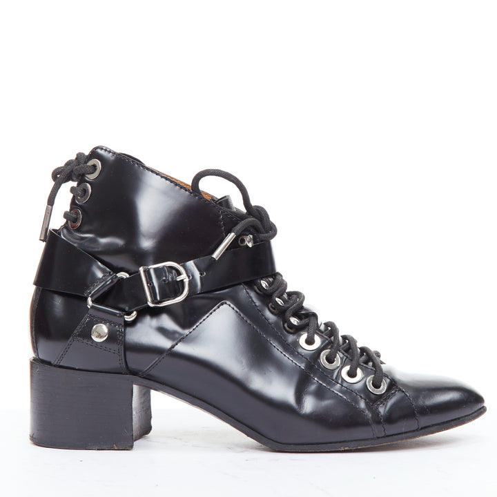 BALENCIAGA black leather silver buckles laced harness booties EU38.5