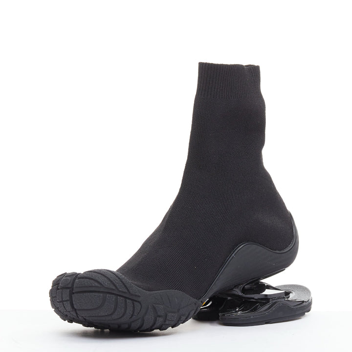 BALENCIAGA Vibram Toe black fabric five toes high knit sneaker boots EU37