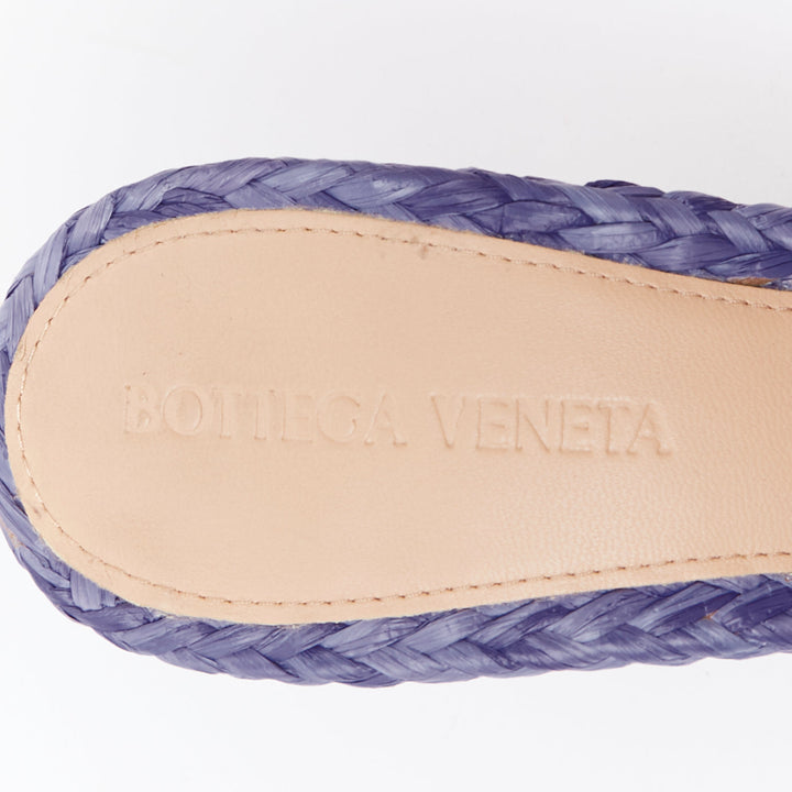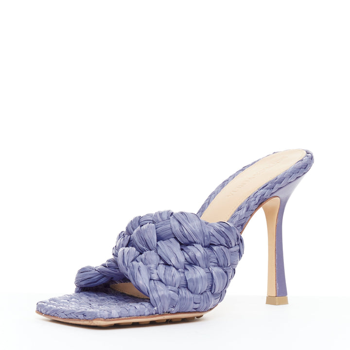 BOTTEGA VENETA Stretch purple woven raffia wicker heel mule sandal EU37