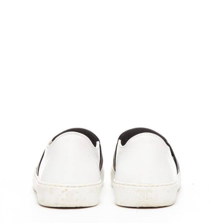 CHANEL black white leather CC logo back minimal classic skates sneakers EU36